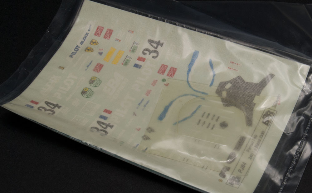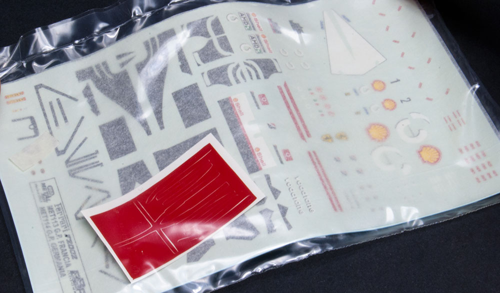 Por precio y exclusividad merece un par de palabras: es un Kit muy viejo, las calcas no están amarillas, pero tras la bolsa se ven cuarteadas, no creo que aguanten el agua. Yo lo tenía para hacerlo en rojo, sin decoración. El acetato trasero está ligeramente amarillo.