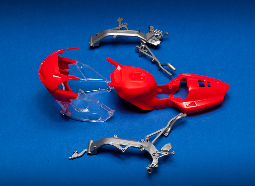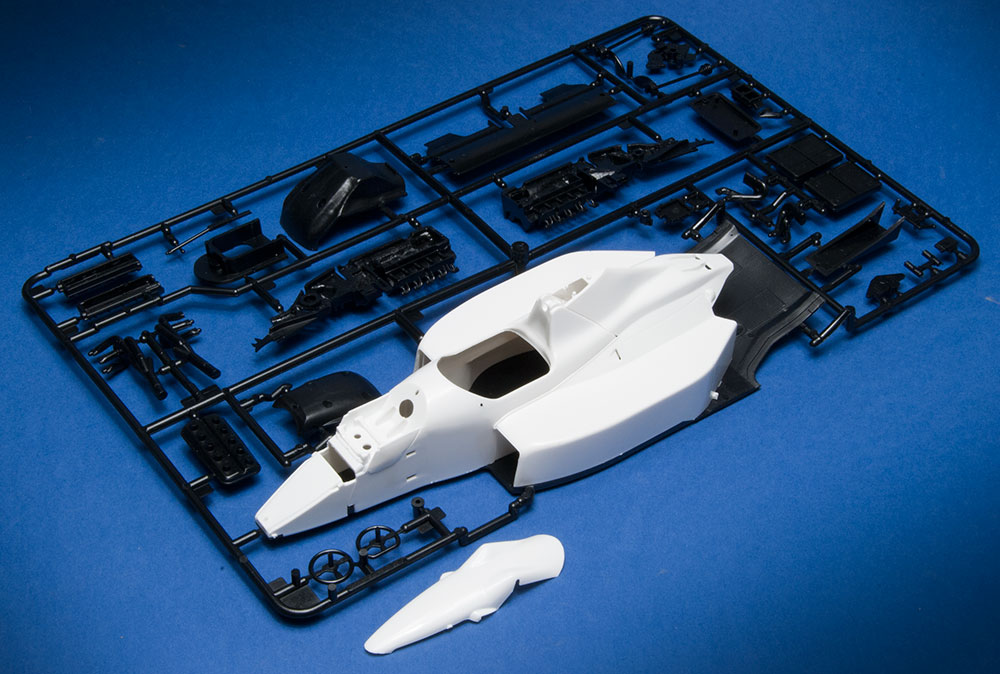 Las piezas no están en sus bolsas originales, pero está perfecto. Un poco de lijado en una rebaba del capó delantero Y una foto de un ejemplar Factory Built de BBR, queda muy pintón así de caja HONDA NR Tamiya 1/12