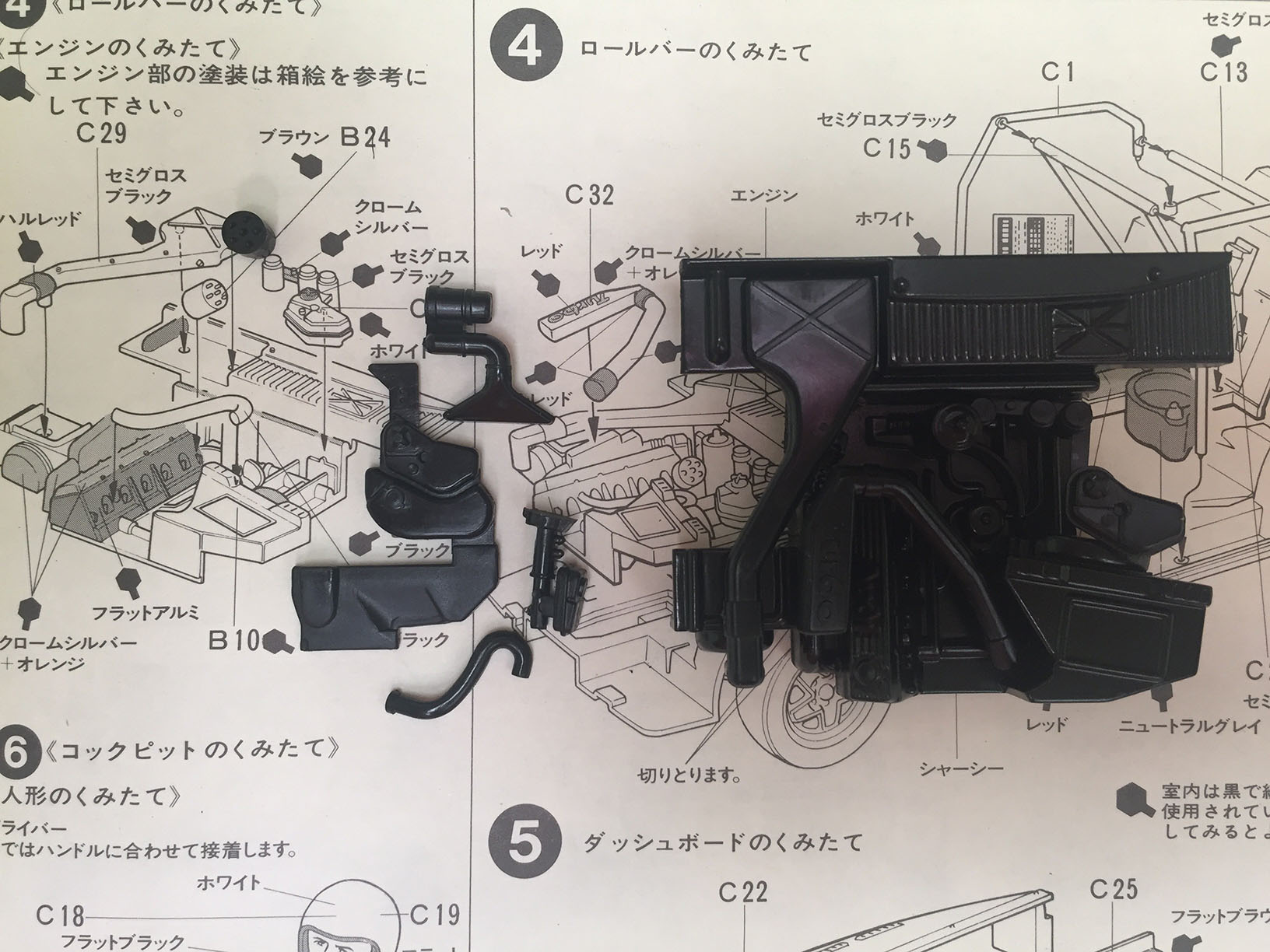 Tengo el de rally, lo acabo de mirar, trae dos instrucciones, en japones y no se si era ingles o castellano, no he leído nada XD, pero en ninguna de las dos salen esas piezas, son como tus instrucciones, si el tuyo es de rally apostaría por piezas del motor de la versión de calle.