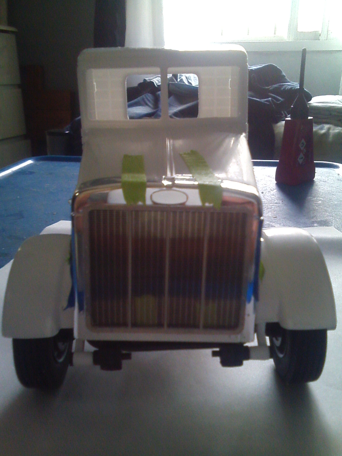 ahora con el capot tiene tres orejitas que son para poner la rejilla y cuando lo pinte no tenga que despintar el capot.