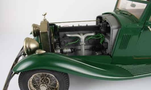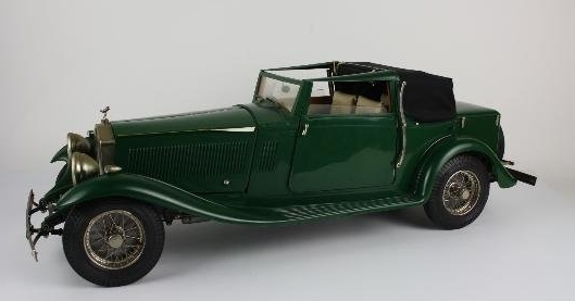 Vendo esta preciosidad Pocher: Rolls Royce Ambassador de 1932. Joia del automovilismo que ya no se fabrica y difícil de encontrar. Tamaño total aprox: 70cmx 21cmx 20 cm. Muy buen estado. Tapicería de piel original blanca, puertas practicables, dirección, pedales freno, embrague, acelerador, luces instaladas con pila, maletero, capó delantero, capota, suspension independiente. Radios metalicos de las ruedas, madera de raíz noble interior en el salpicadero, etc. Consultar, puedo enviar más fotos y especificaciones. Portes incluidos, se recomienda con agencia especializada, dada su fragilidad o entrega en mano.