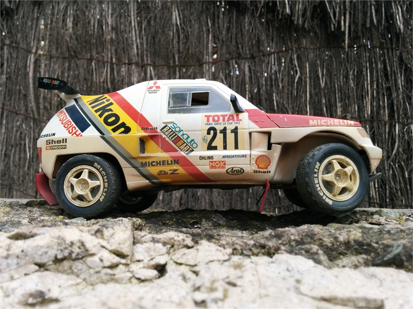 Se trata del Mitsubishi Pajero de los franceses Hubert Auriol y su copi Philippe Monnet, ganadores del Dakar 92 en este caso se llamaba concretamente Paris Le Cap.