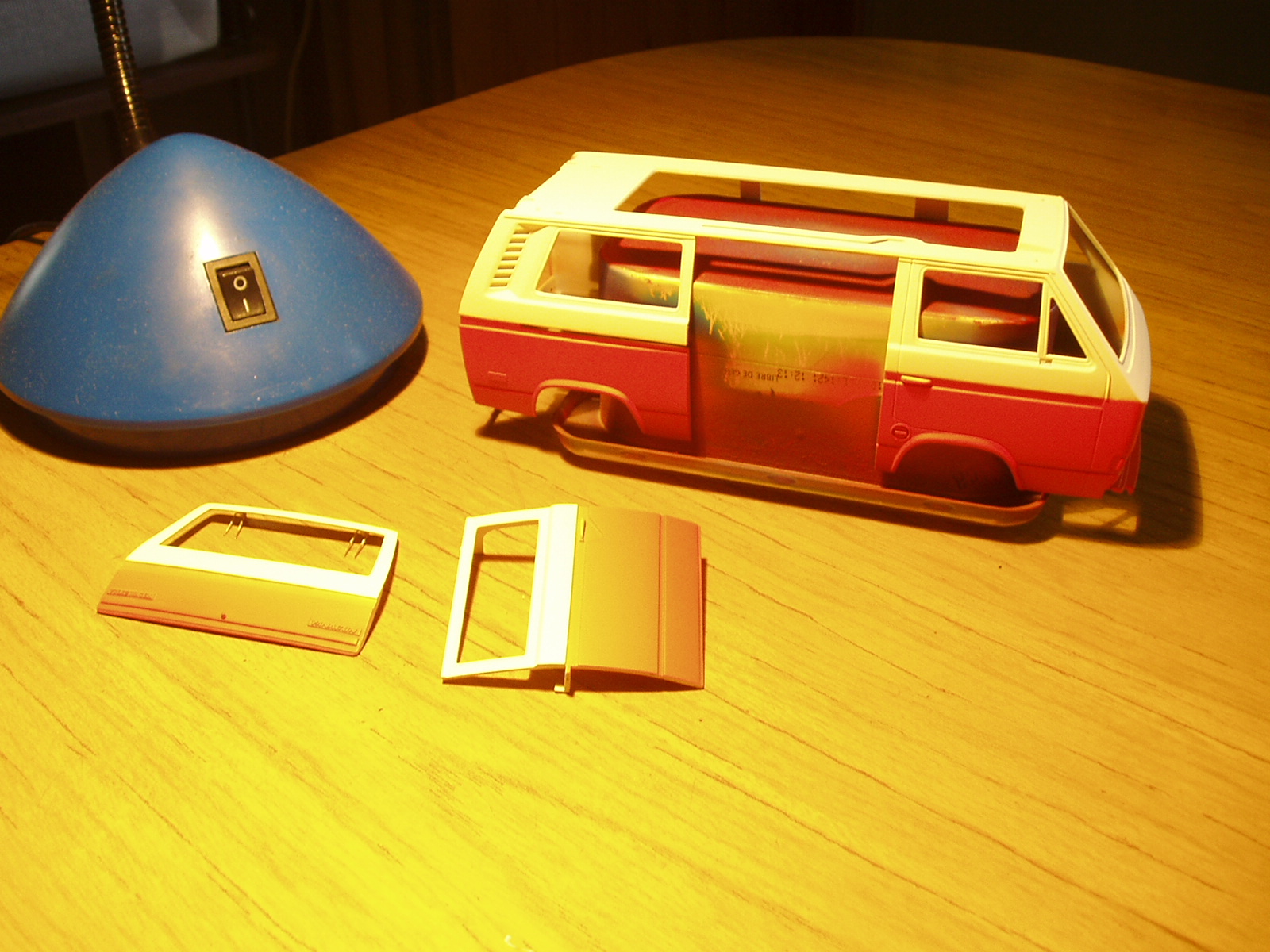 estuve pintando la Vanagon con dos colores: Blanco calido y Anaranjado de la linea de acrilicos Eterna.