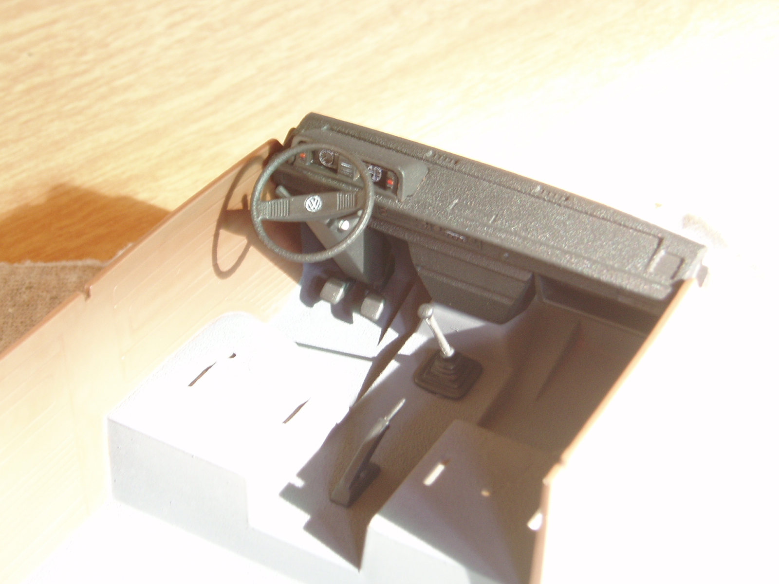 Hola chicos, estuve pintando el interior de la combi, las paredes con Brown y el piso con Dark Grey ambos de Tamiya acrilicos, ademas pegue el salpicadero