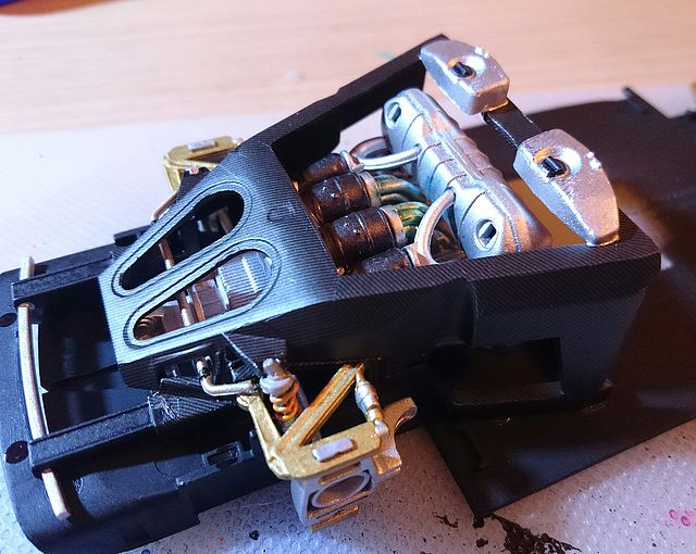 Se me habia pasado el post, menudo trabajo con esa jaula en carbono, me gusta como lo llevas y aunque llego tarde, los amortiguadores no estan al nivel de como estas llevando la maqueta, el muelle que nos muestras no me convence, una manera sencilla de hacer muelles de alambre es, comprar un tornillo del diametro que la maqueta trae los muelles y enrrollar el alambre sobre los filetes del tornillo, quedan prefectos, pruebalo en la siguiente