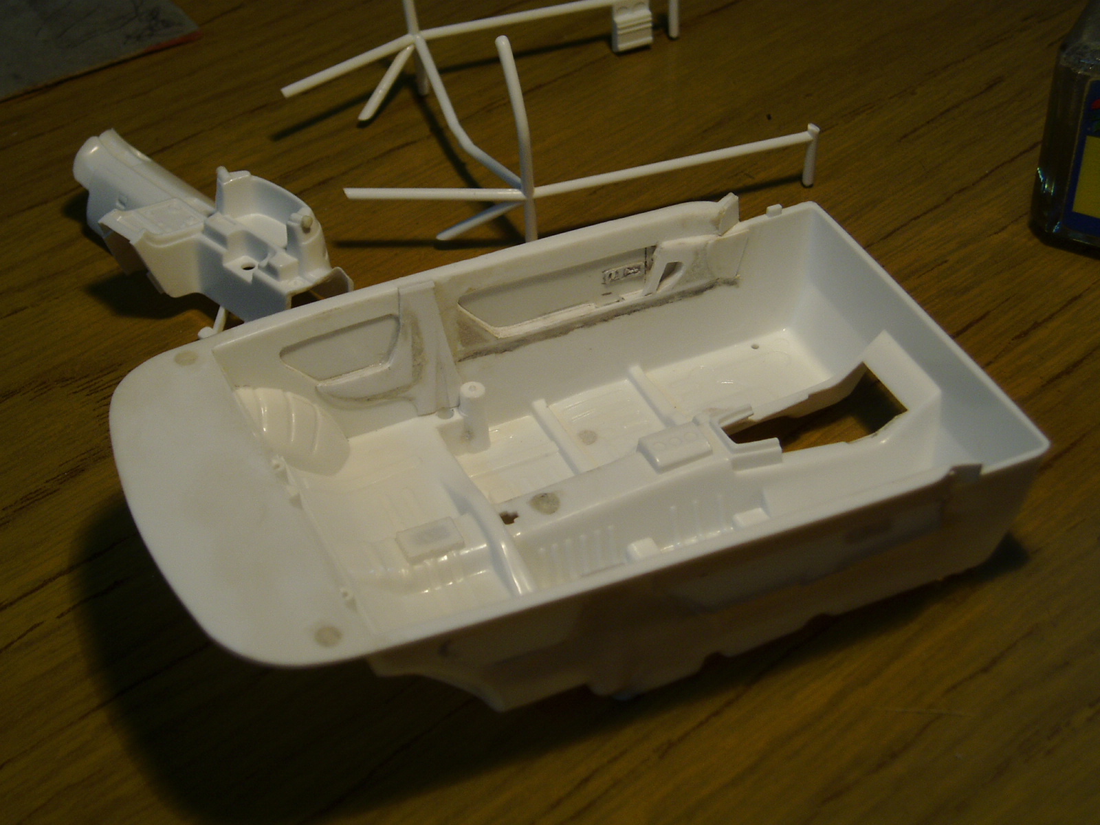 Hola chicos, estuve viendo el tema del interior del modelo, Tamiya ha hecho un desastre en cuanto a proporciones en los paneles laterales, pero es poco lo que se puede mejorar. Tengo tambien el modelo de calle y es igual al de carreras, liso.