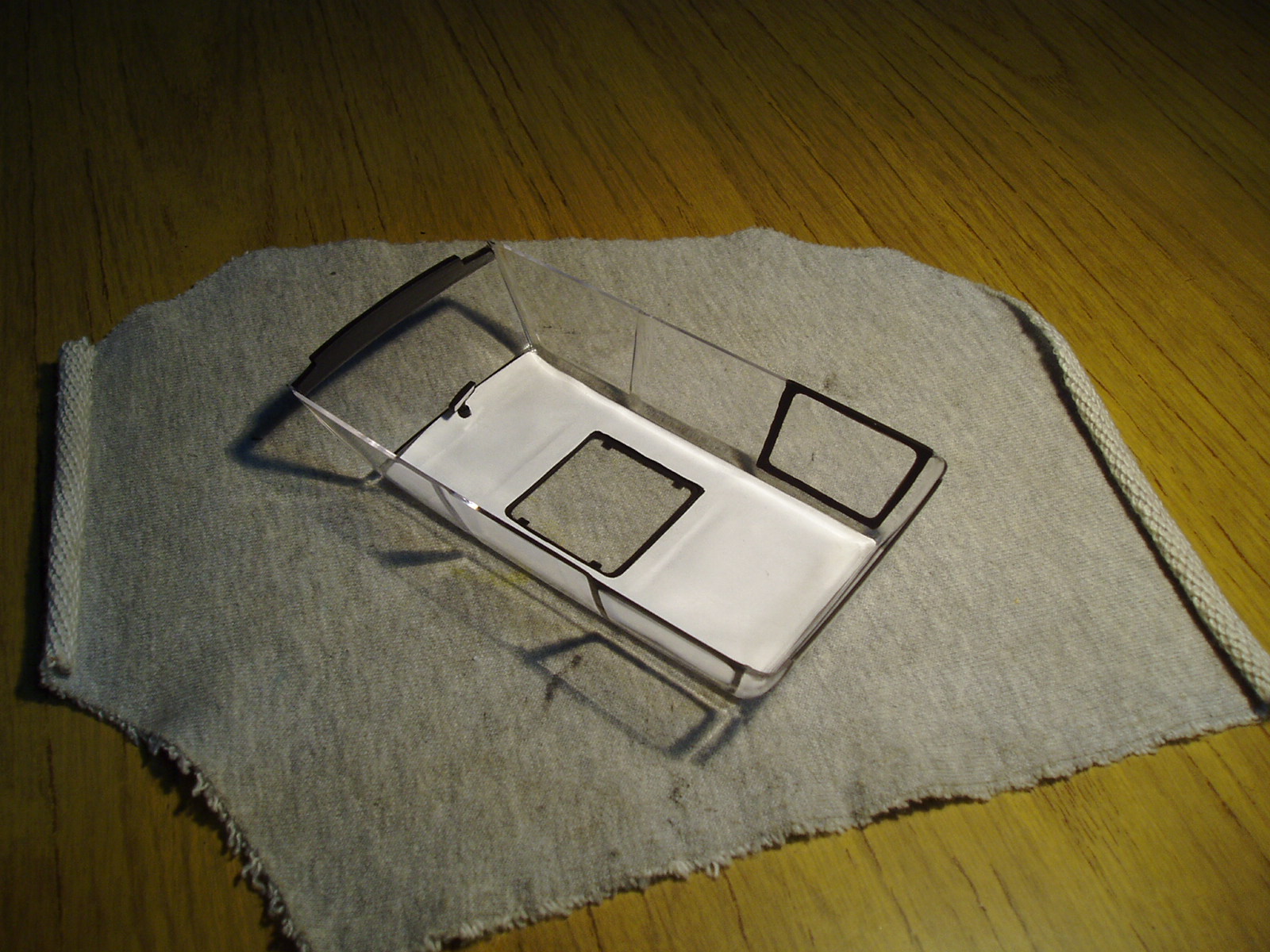 esperando a que pasen los dias para poder seguir con la carroceria, me dedico al tema cristales, a los cuales les pinte de negro acrilico Eterna las partes correspondientes a los marcos de las ventanillas y utilice papel blanco para hacer el techo interior, ademas de tapar los huecos que traen los cristales en esa parte. Ahora toca barnizar los cromados para no tener que esperar mas tiempo para su manipulacion como con la carroceria.