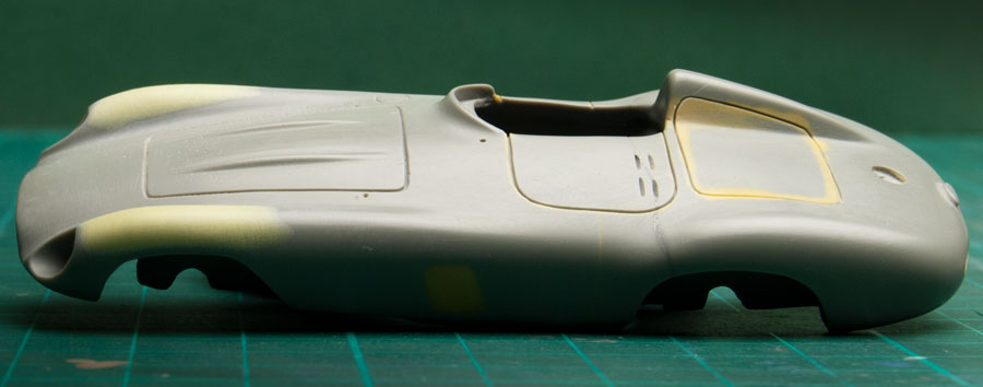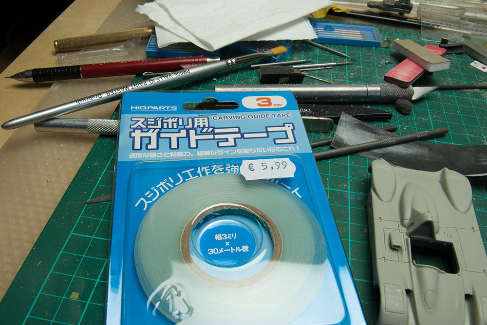 Se adapta muy bien a los contornos, con la adhesión justa, y no deja residuos: Para formas más complejas, con una plantilla de plasticard va que lo quema, aunque también las he usado de metal: En la foto anterior se ve que para el capó trasero hay mucho epoxi extra, es porque fresé las líneas para darlas más holgura y trabajar con más comodidad: A mi la primera vez se me atragantó, pero es cuestión de práctica.