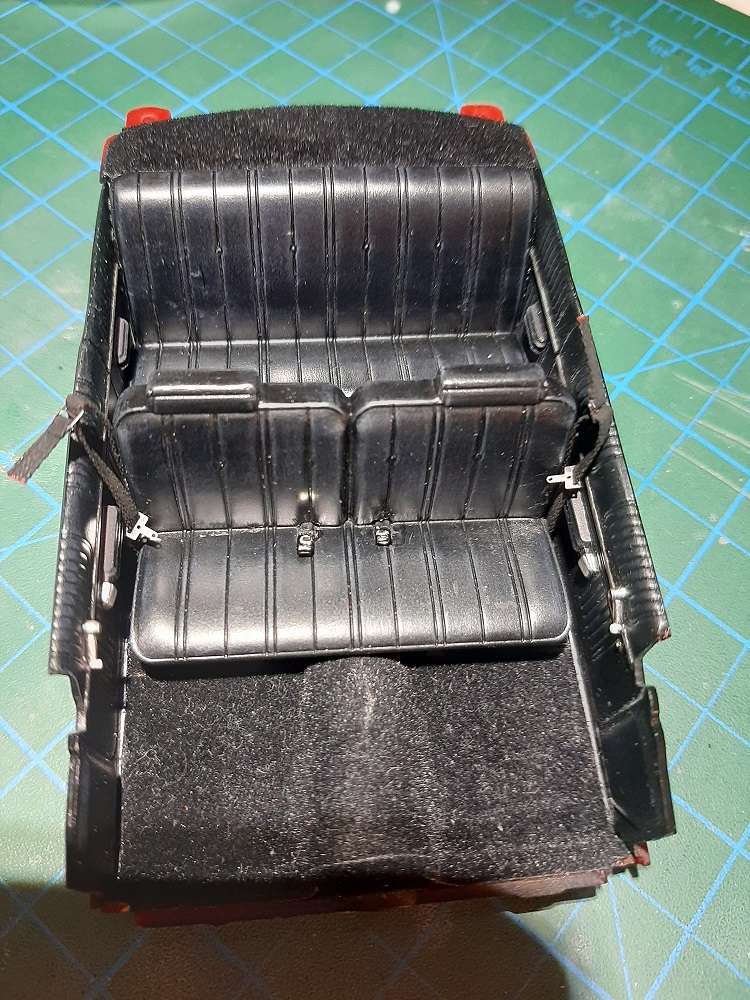 interior terminado con cinturones añadidos a falta de adjuntar salpicadero