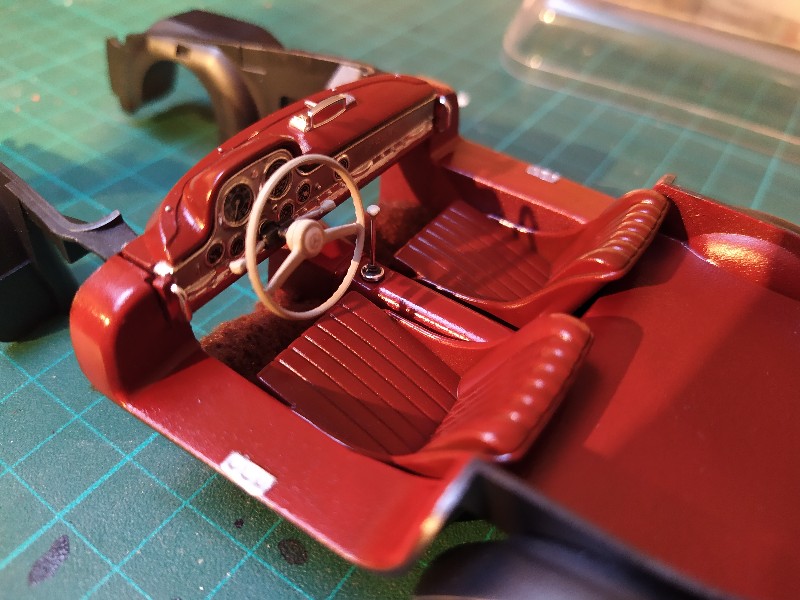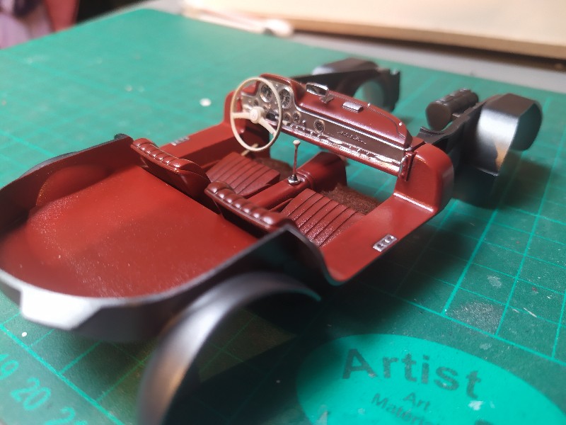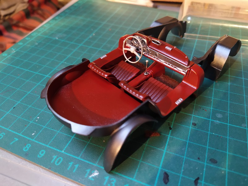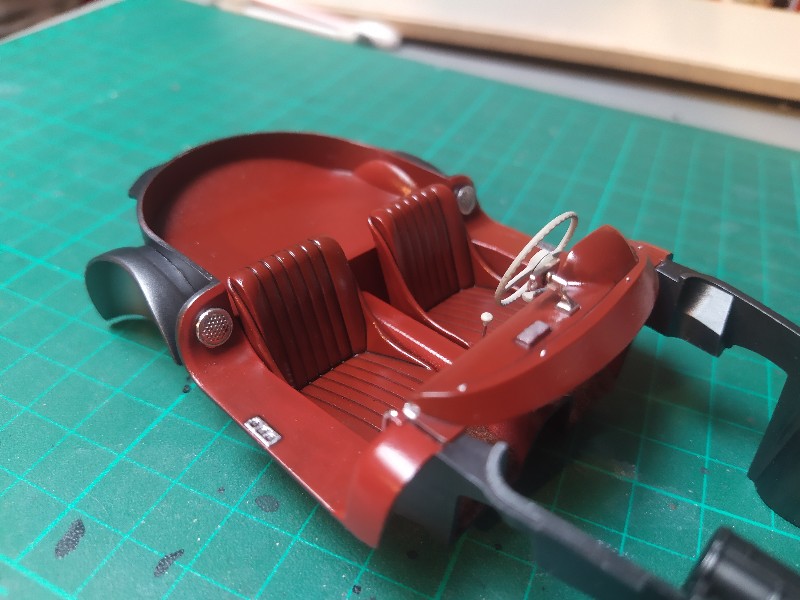Buen interior, un poco de rojo oscurecido muy diluido para darle profundidad a las rayas de los asientos y ganaran un monton.