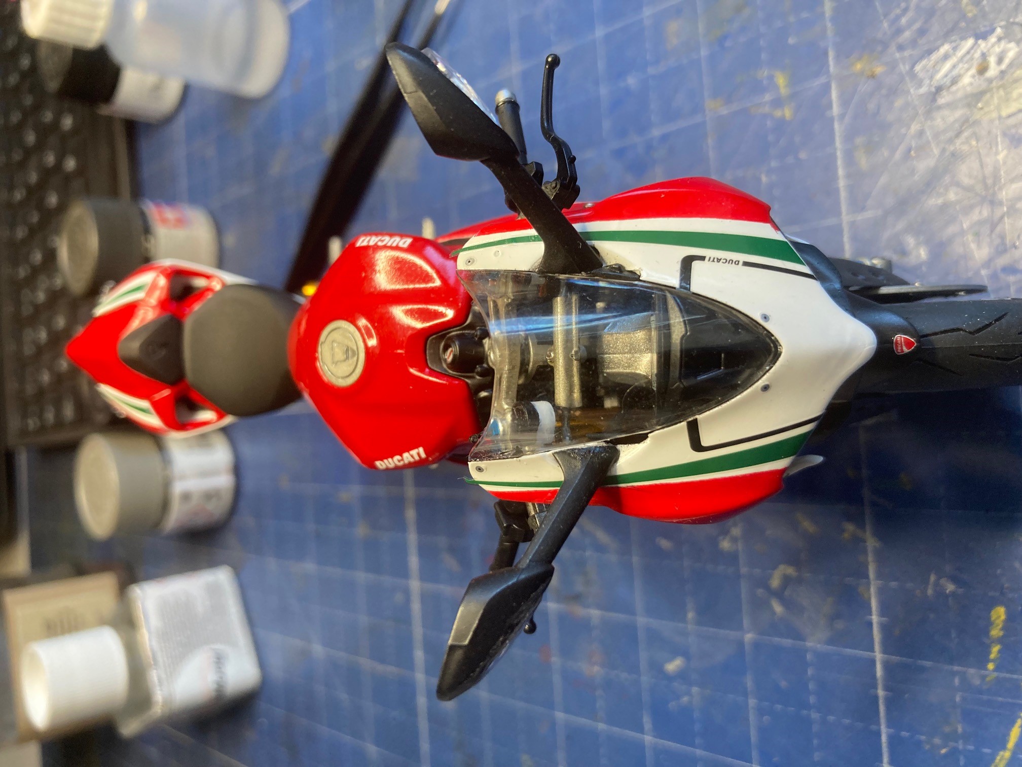 Buenos días os comparto algunas fotos de mi ultima construcción, Ducati Panigale S Tricolore, Tamiya 1/12. Perdonar si las fotos no son de buena calidad pero es la primera vez que subo algo.