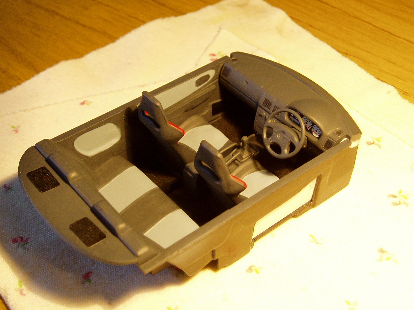estuve con el interior dandolo por finalizado en tema modificaciones, asi quedo Ahora sigue pintar para lo cual usare un gris oscuro en vez de negro que es lo que indica el instructivo.