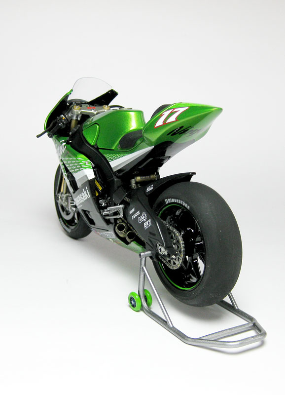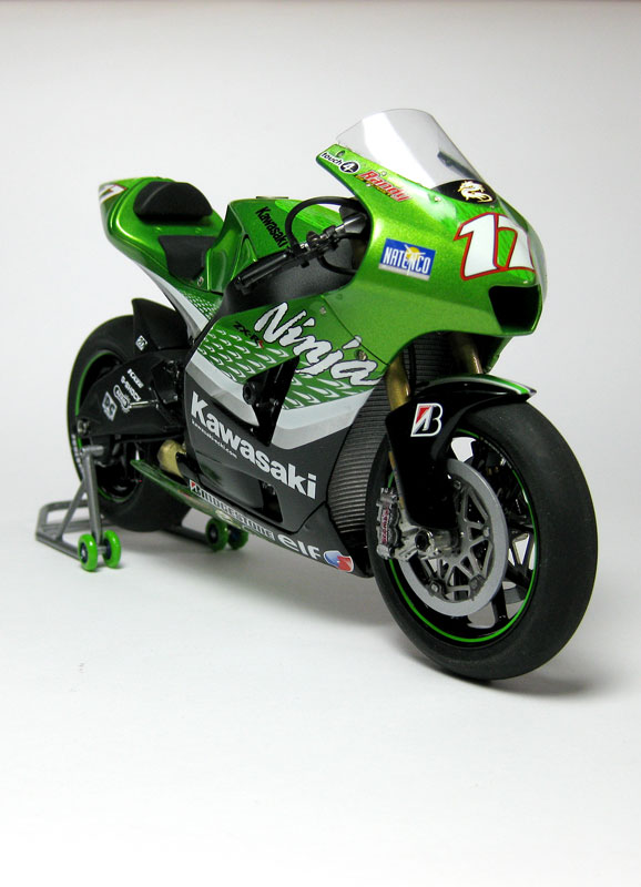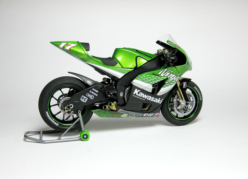 Se trata de un maravilloso kit de Tamiya a escala 1/12 de la Kawasaki Ninja ZX-RR que uso el francés Randy De Puniet , con el dorsal #17 para correr el campeonato de Moto GP de 2006 .