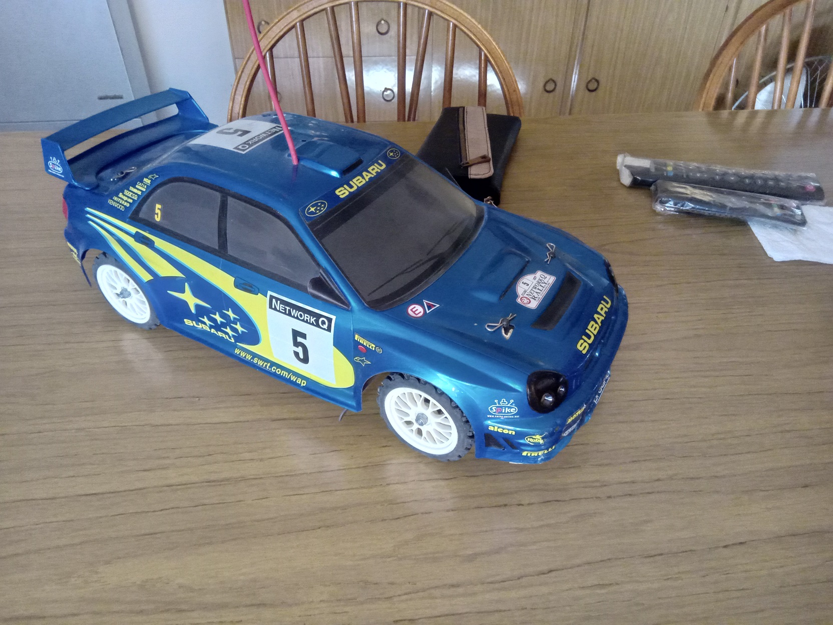 Tambien compre el Subaru de Altaya RC, el cual disfruto mas seguido que la Patrol, pero en este caso destrui dos baterias Lipo, una por un cargador de medio pelo y la otra por descargar demasiado la bateria (me entusiasme conduciendolo). Este modelo tiene un motor de 35000 RPM, 260 Watts, que con la multiplicacion de engranajes adecuada que tiene ahora alcanza los 70 km/h. Para que no me pase lo de la descarga, aplique conocimientos electronicos e ingenio haciendo una plaquetita que corte el suministro de electricidad cuando llega a cierto valor.