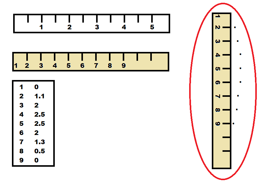 En una lamina de plastico trazamos una linea y pegamos la cinta de enmascarar que pusimos en el chasis paralelamente a la linea trazada sin taparla, y marcamos con un punto la distancia que medimos correspondiente a cada numero de la tabla, quedandonos una serie de puntos a la distancia correspondiente que representa el perfil de la pieza que necesitamos para tapar el hueco entre el chasis y la carroceria (optenemos algo similar al dibujo dentro del circulo rojo).