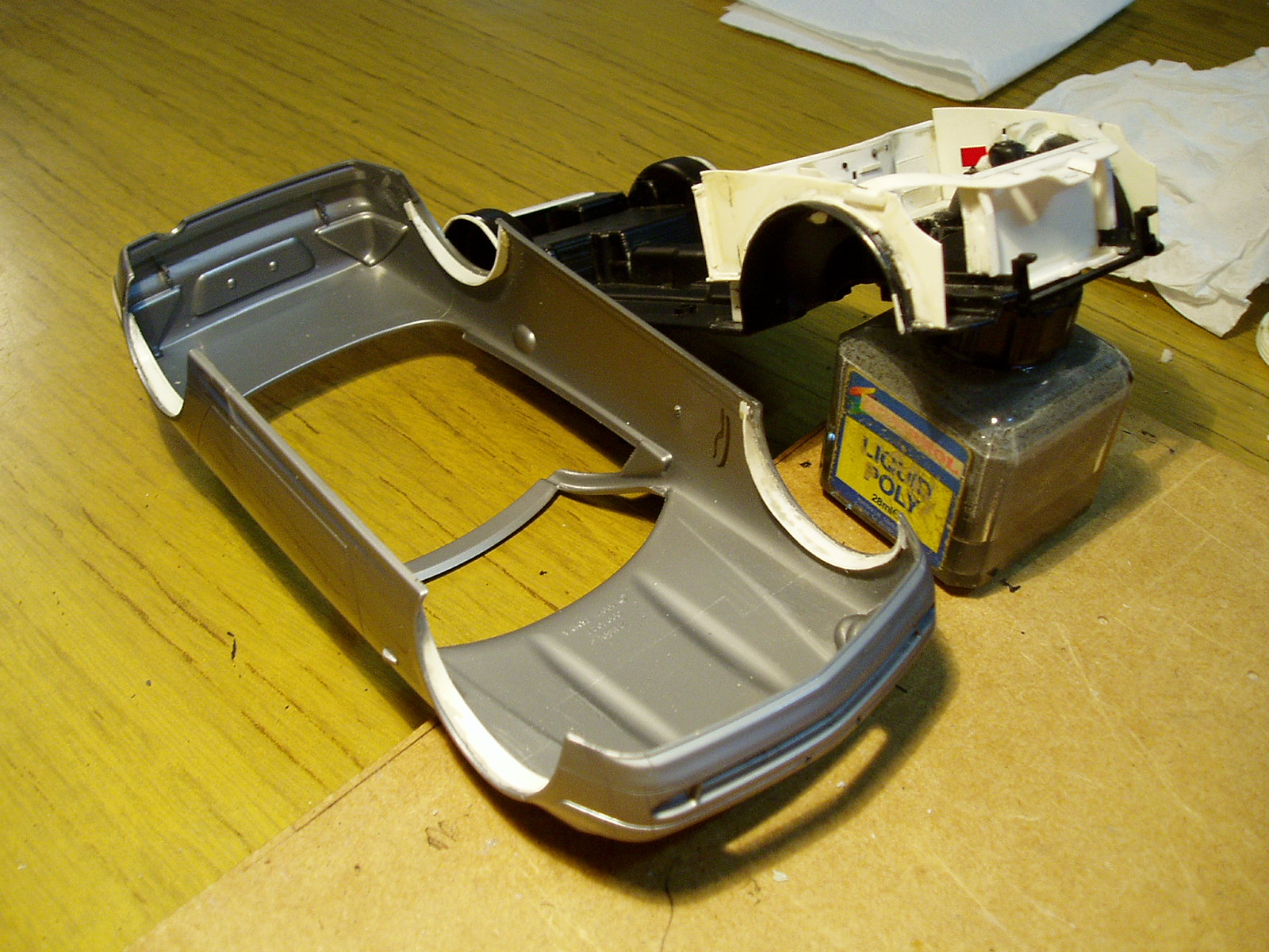en mi ultimo modelo queria cerrar los pasos de rueda y busque varias alternativas hasta que se me ocurrio en uno de los tantos intentos lo siguiente, si pudiera medir la distancia desde la carroceria al chasis podria hacer una pieza con el perfil del guardabarro para pegar por dentro en la carroceria.