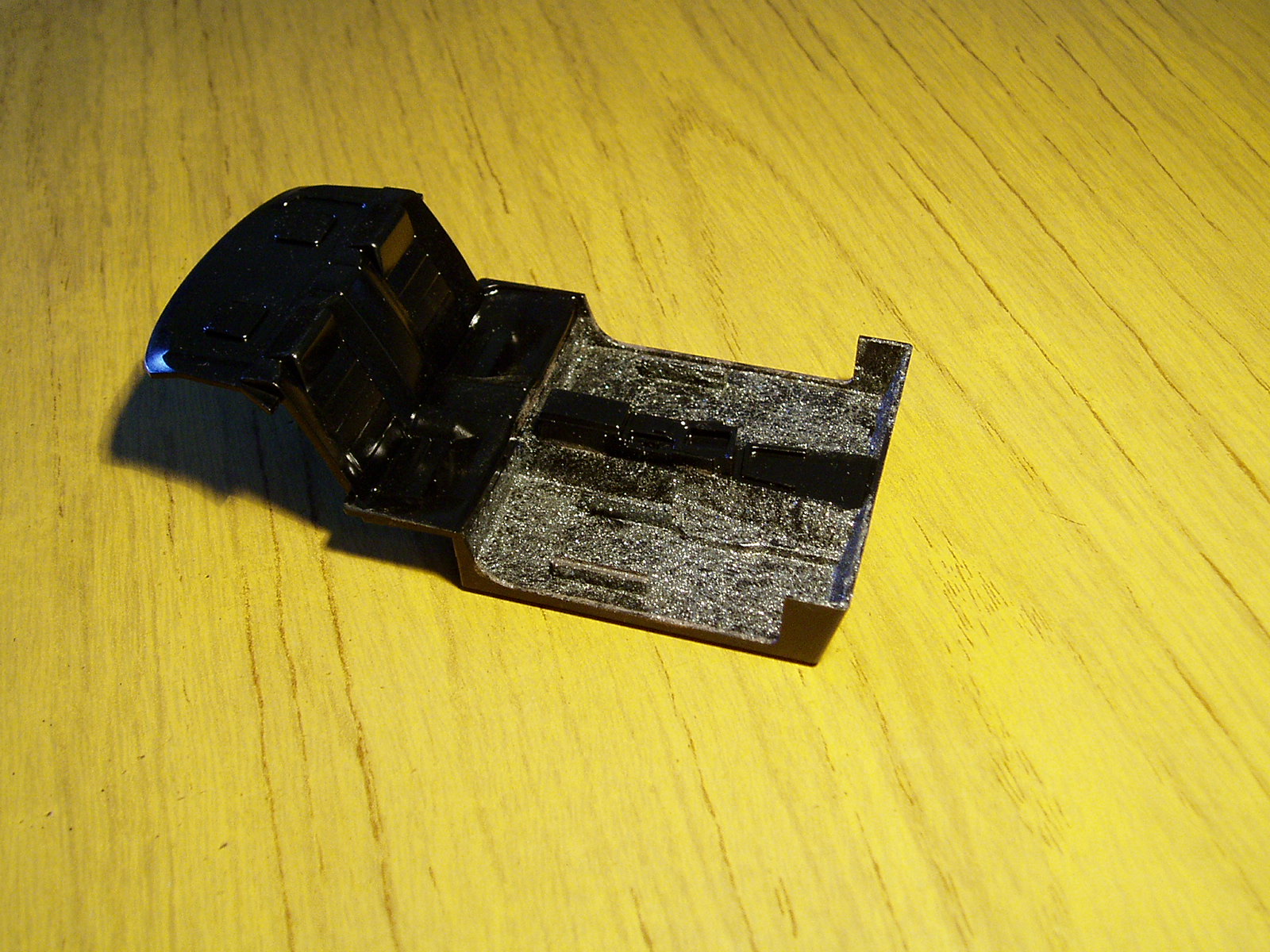 "Si quitamos la máscara, los faros traseros tienen los bordes con las esquinas rectas del color negro, siendo en real redondeadas. Para conseguirlo, cojo un bastoncillo de Mr. Hobby, lo mojo en diluyente X20A y lo escurro. Y con él, froto las esquinas para redondear el borde poco a poco."