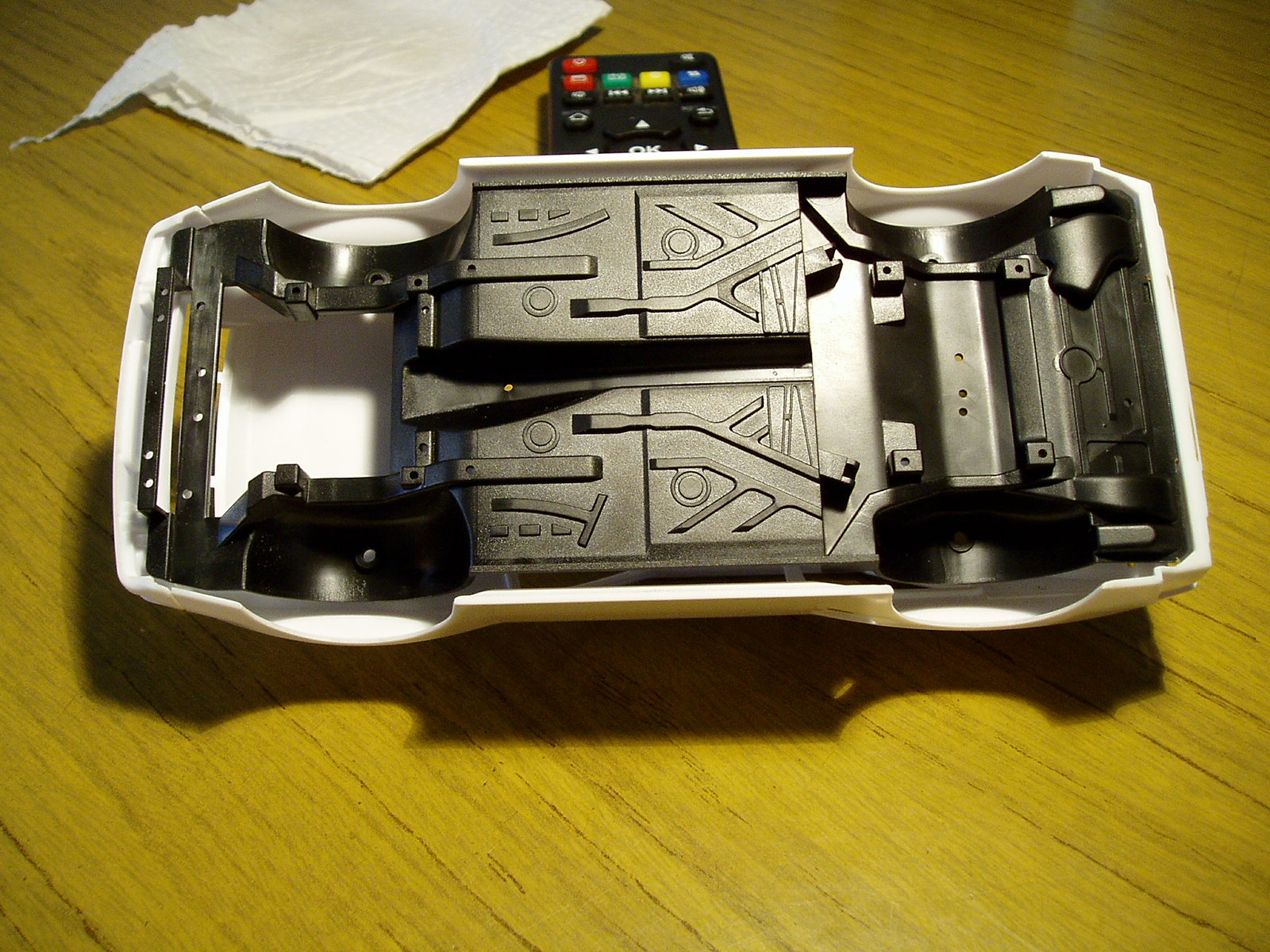 despues de dar unas cuantas vueltas y ver como hacer el enginebay me apoyo en el kit de Tamiya, asi que comienzo por las torretas de los amortiguadores para lo cual uso plastico alto impacto blanco de 1mm, si Tamiya hizo algo parecido pues creo que podre hacer algo parecido a esto