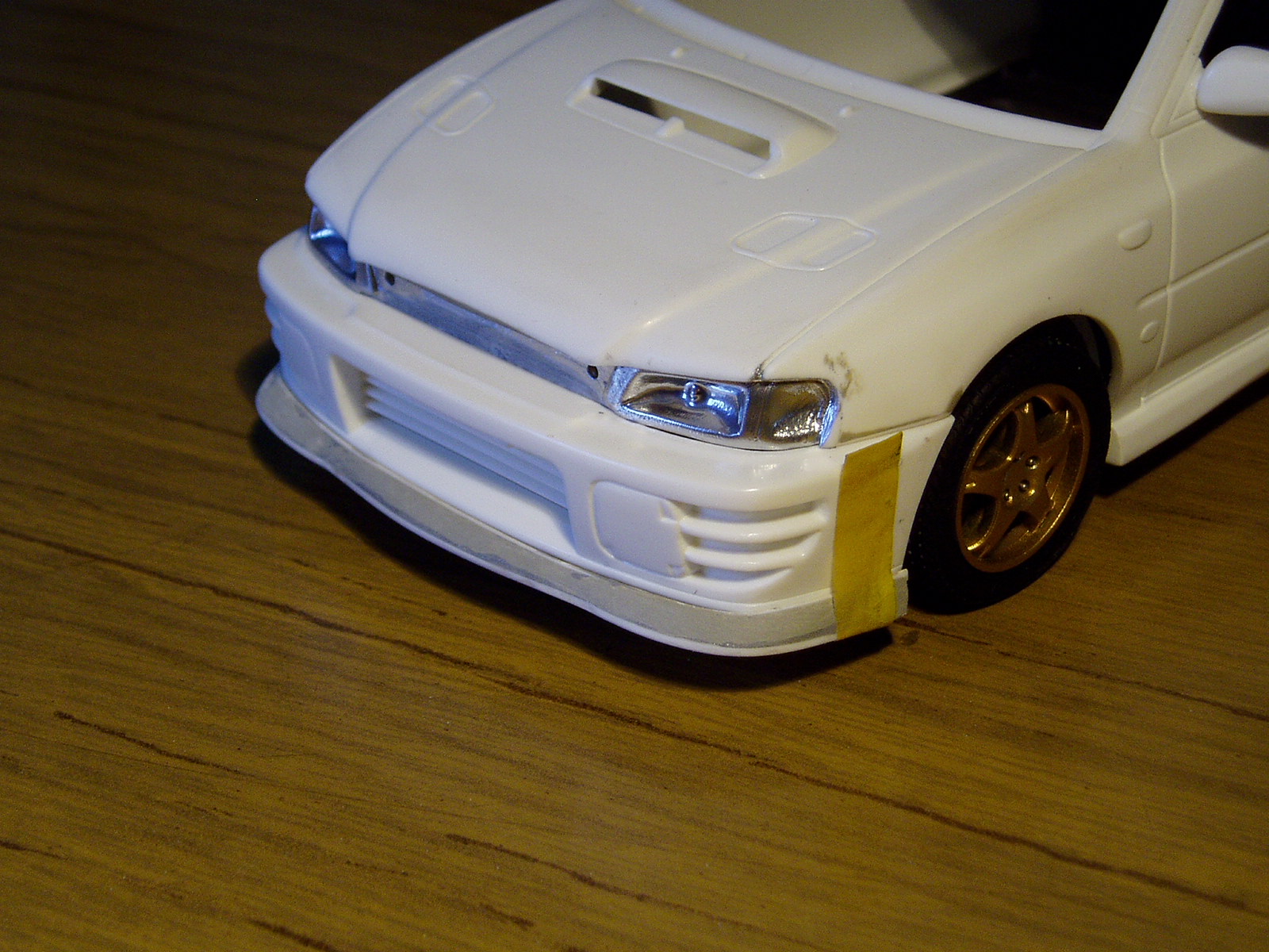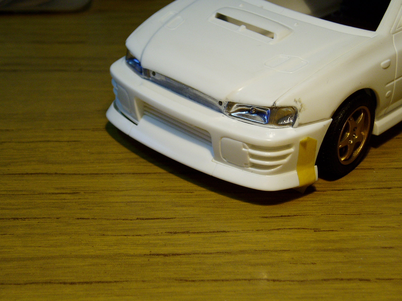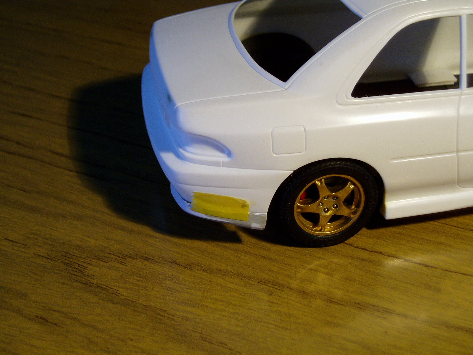 estuve con el tema spoilers del Impreza, tratando de copiar y corregir los mismos ya que Fujimi los hizo con la forma incorecta en el caso del frontal y sobredimensionados en el caso de los traseros.