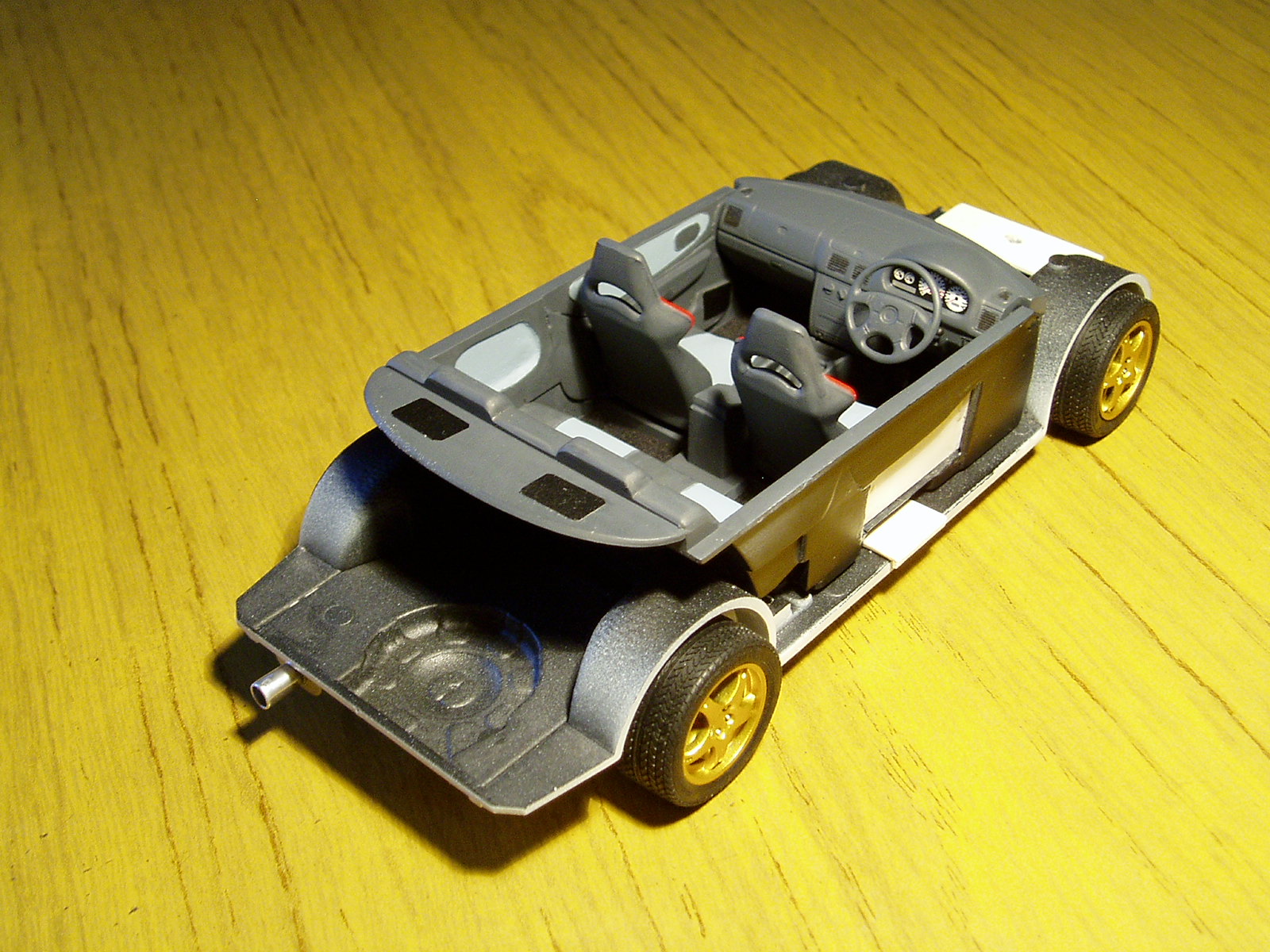 estos dias estuve pintando la carroceria, pintando con gris de fondo y blanco encima, para terminar dando barniz sobre las calcas. Ahora toca seguir con el interior, para cuando seque completamente el barniz pulir la pintura.