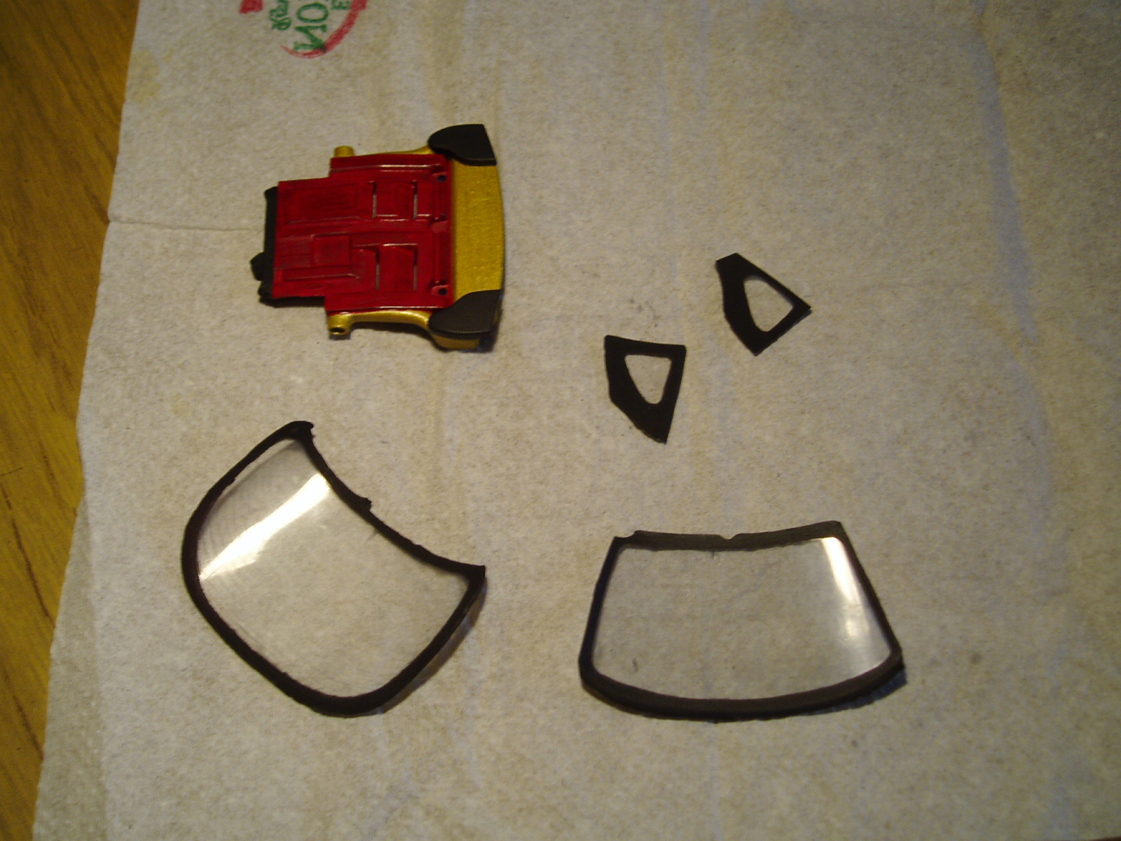 veremos como hacemos con los mismos; por lo que vi las ventanillas del conductor y acompañante estan recortadas para que al abrir y cerrar las puertas, estas quepan en el vehiculo. Probablemente quede el modelo sin estas al finalizar su armado.