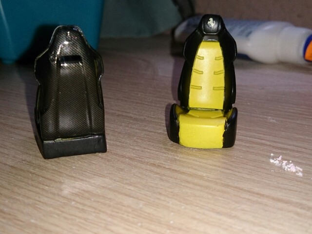 Hola compañeros.. Simplemente subo el ultimo avance del ferrari.. Se trata de los asientos, tienen las calcas de el logo ferrari puesta, y lacados con laca mate.. Espero que os gusten, y sobretodo gracias por pasar y comentar.. Os dejo la foto..