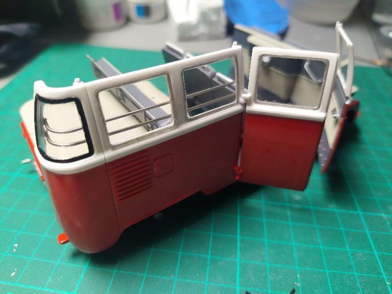 El montaje de puertas y techo una pesadilla. Las "bisagras" de las puertas y los tetones del techo son de mantequilla y además hay que forzar la carrocería para llevarla a su posición.