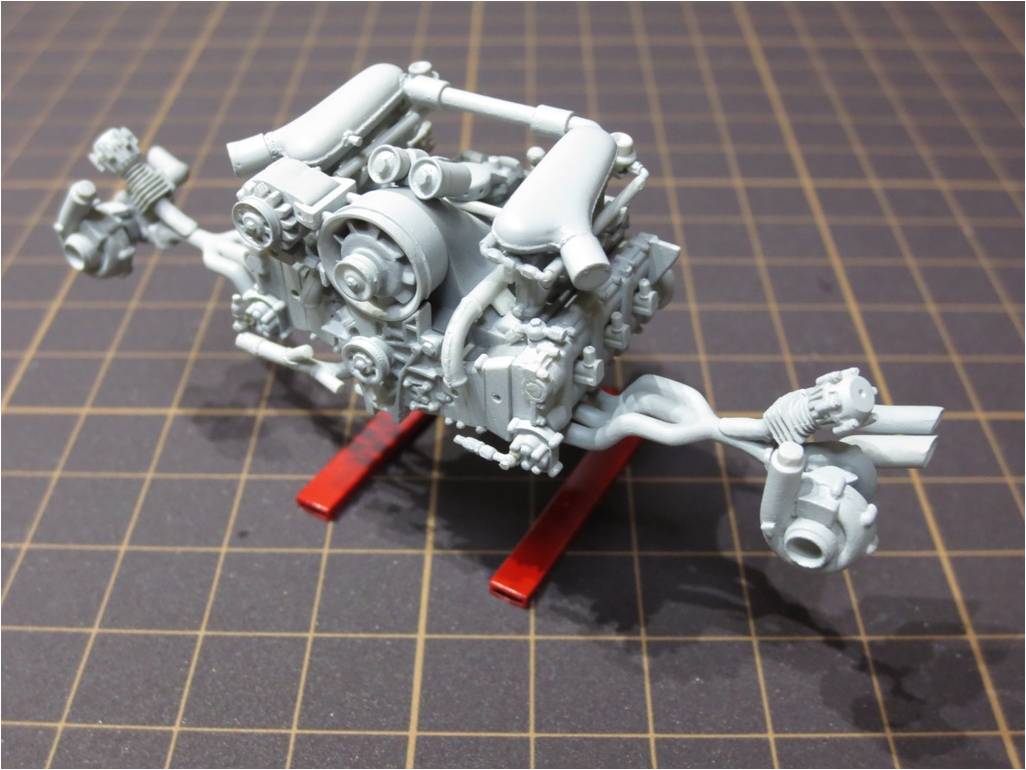 No lleva motor, prácticamente es la carrocería, ruedas y cockpit (austero)......hay que trabajarse un poco las entradas y salidas de aire porque si miras por ellas se ve todo lo de dentro. Muy vacío.