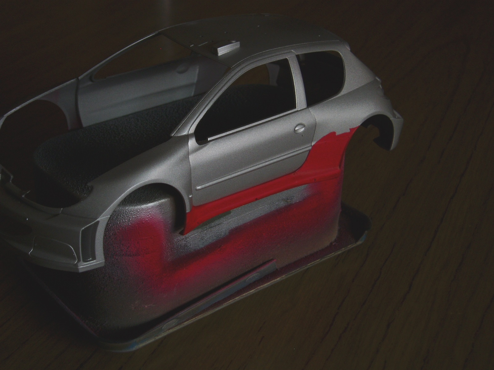 ayer termine con el chasis (bajos) del Peugeot 206 WRC, el aluminio es lamina autoadhesiva lijada para quitar brillo. Los guardapolvos delanteros los hice de nuevo con lamina de 0.25mm de espesor ya que los originales le quitaban movimiento a las ruedas. Asi quedo Ya casi esta terminado, faltan las antenas y listo, creo que hoy lo publicare en modelo terminados.