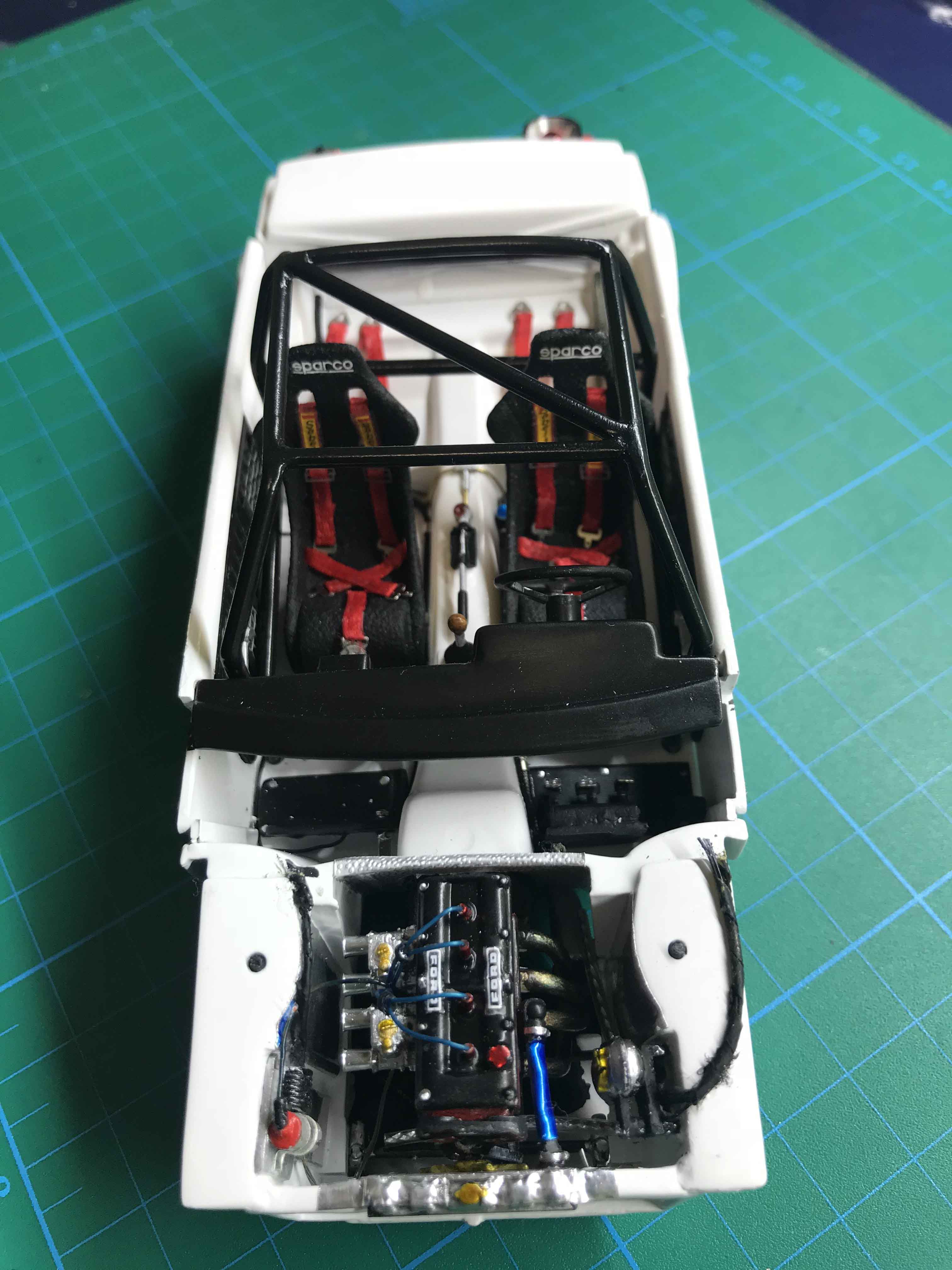Que buen trabajo Manafrank, ese interior como todos los tuyos, excelentes; para pegar cables yo uso cianocrilato liquido y/o en gel, si puedo hacer un agujero cuyo dorso no se vea paso un cable de cobre a modo de abrazadera y pego por detras.