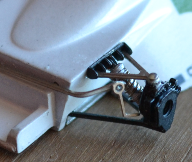Jesus... Sinceramente no sabría decirte si esto ayuda o no... La vista la forzas lo mismo, solo que ves aquellas cosas que no ves de ninguna otra manera. La pieza esa que ves tiene un agujero de de 0,7 mm +- y la pata de abajo de ese brazo calza debajo del amortiguador sobre un agujero de 0,5 mm... Sin lupa y sin bruselas hiperfinas no hay forma de montarlo...