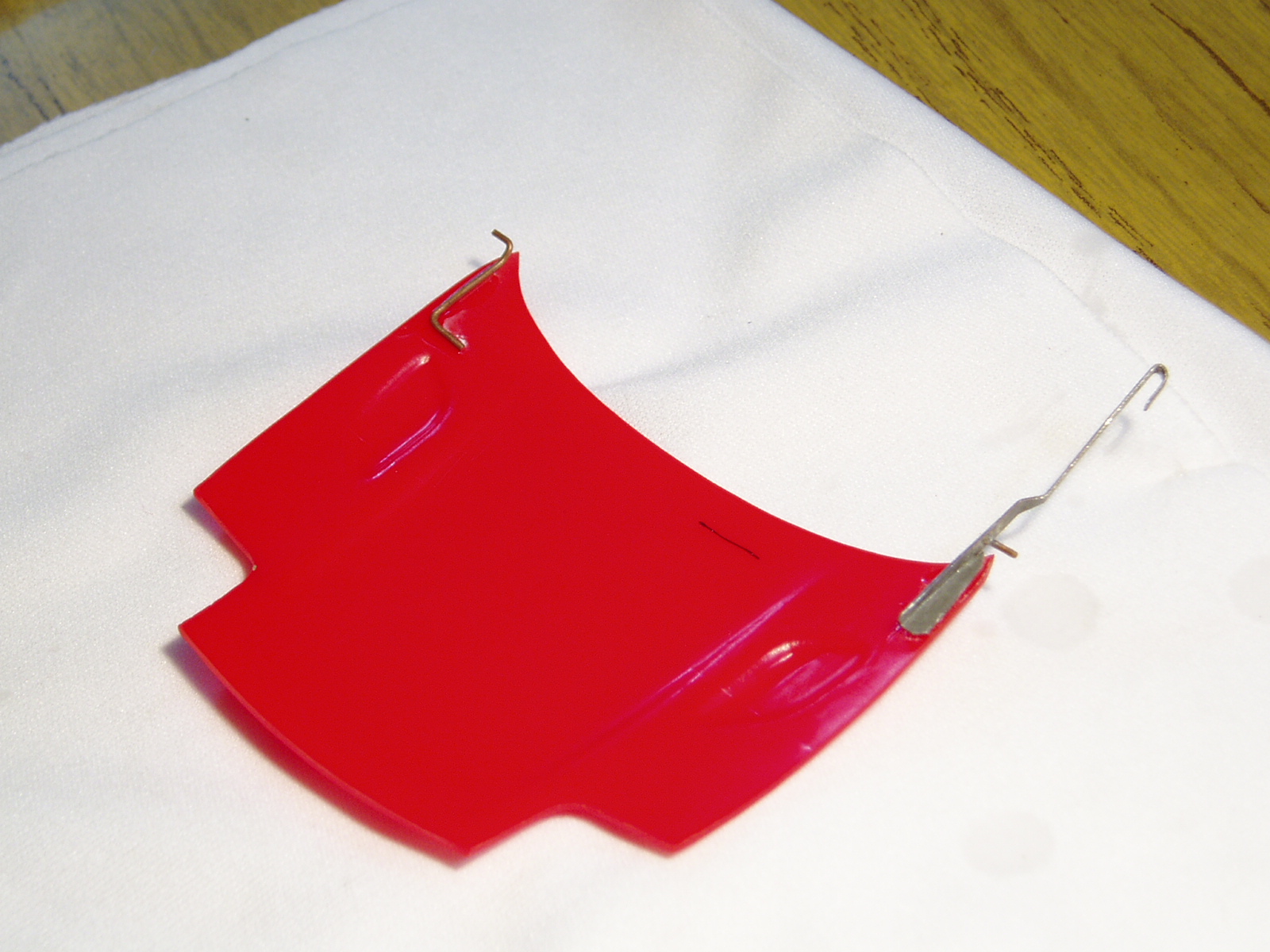 empece con el sistema de bisagras que habia planeado primero para lo cual utilice un alambre de cobre de 0,75mm de diametro y una hojalata galvanizada de 0,5mm de espesor. Para unirlos utilice estaño pegado con cianocrilato al plastico endurecido con bicarbonato de sodio. Ahora estoy haciendo la trama interna del capot con laminas de plastico.