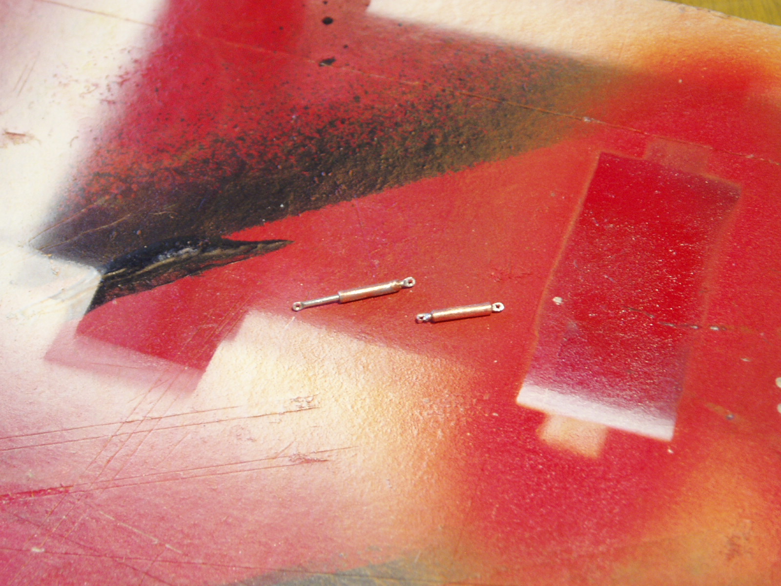pense en hacer algo mas sobre el tema capot para que se asemeje mas a la realidad e hice los resortes neumaticos, para lo cual utilice solo cobre, soldado con estaño y pegado con cianocrilato. La longitud del cuerpo es de 7 mm y el vastago de 0.75mm de diametro, los orificios son de 0.5mm. puestos en su sitio Pronto mas avances.