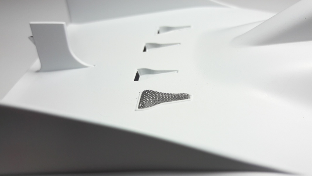Y como Spotmodel me iba a mandar lo anterior (y alguan cosilla más….) muy rápido, aproveché y les pedí rejilla para cubrir las entradas NACA de detrás, (de las cuatro, las de los extremos), que permiten el paso de aire a los dos turbos. Aquí veis la rejilla y la entrada de aire a cubrir: