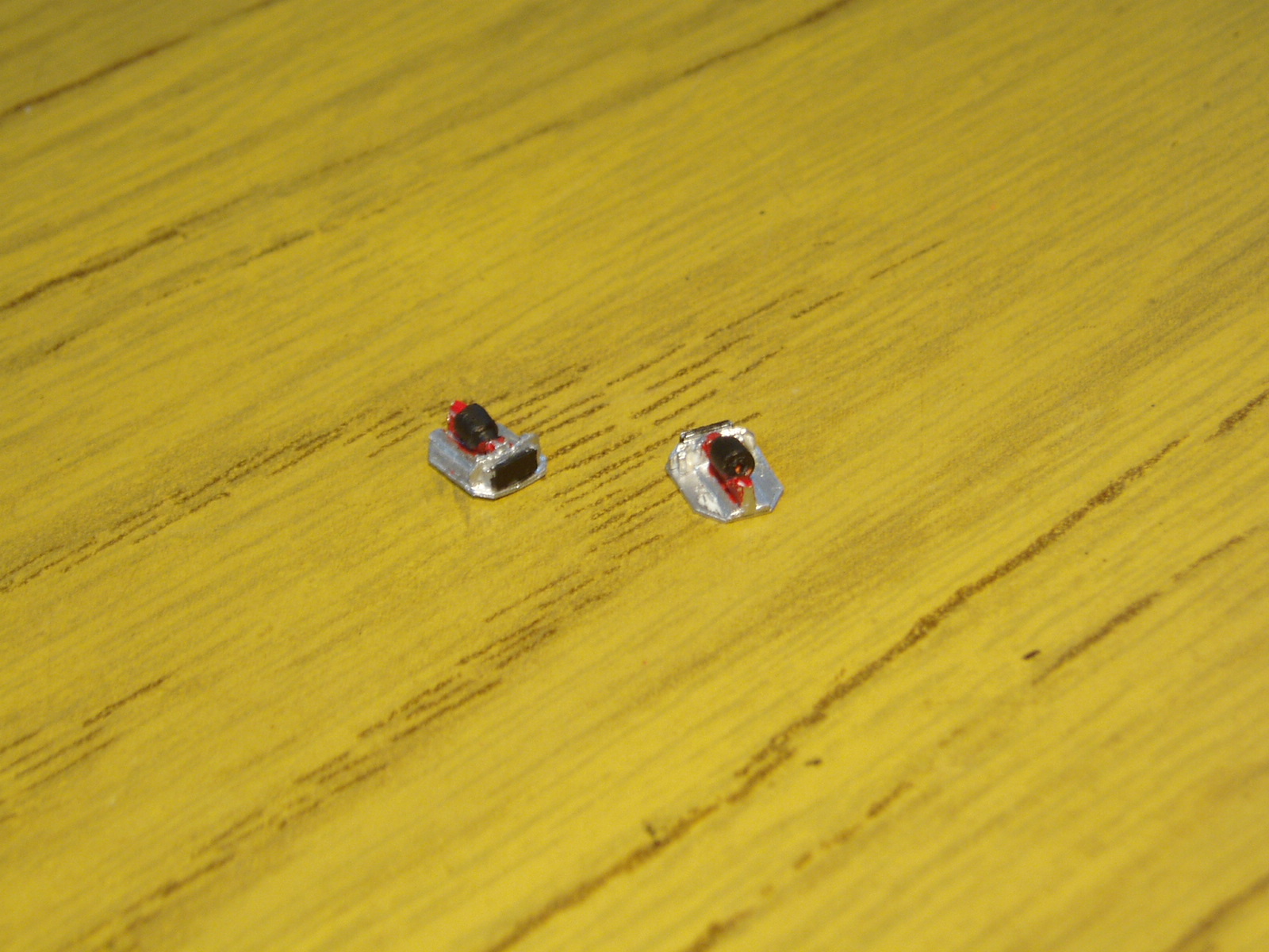 Para ello utilice un pedazo de arbol y rebaje su diametro y en un extremo para dar forma. Luego utilice lamina de plastico de 0.25mm de espesor para hacer la base y lamina de 1mm para hacer el nucleo de hierro de la bobina dando forma de U con lima cuadrada Con una lamina de 0.5mm de espsor hice los aletines disipadores, fichas de coneccion y refuerzos de la base. Pinte todo con Plata de Mr Color y detalle con Rojo fuego y Negro de Eterna. Por ahora es todo, aun me falta ubicarlas en el vehiculo.