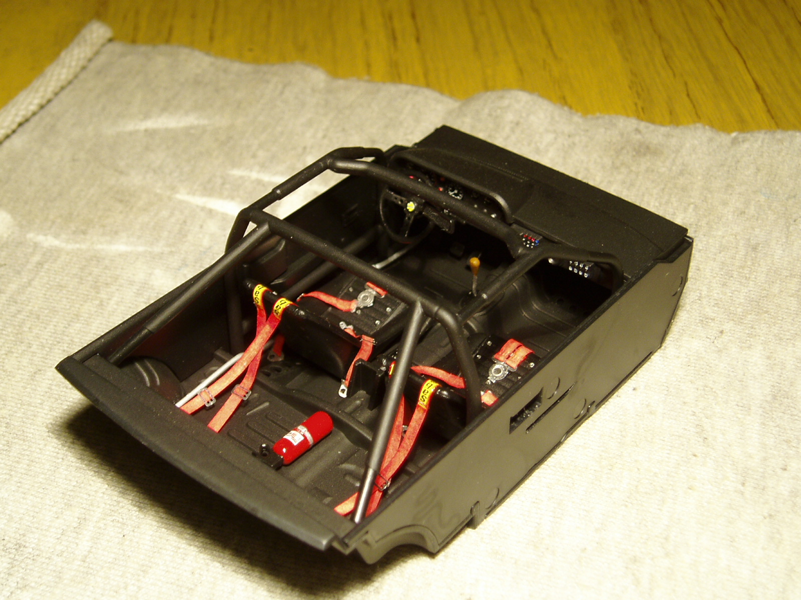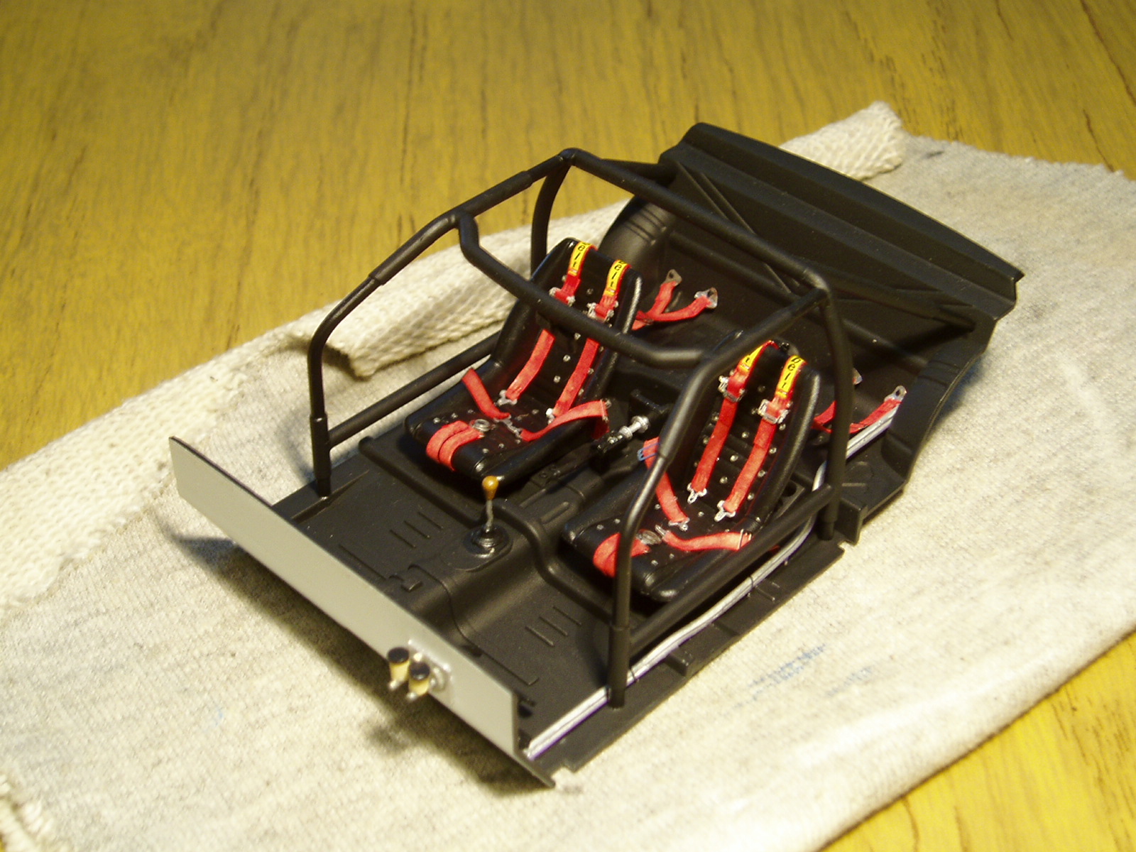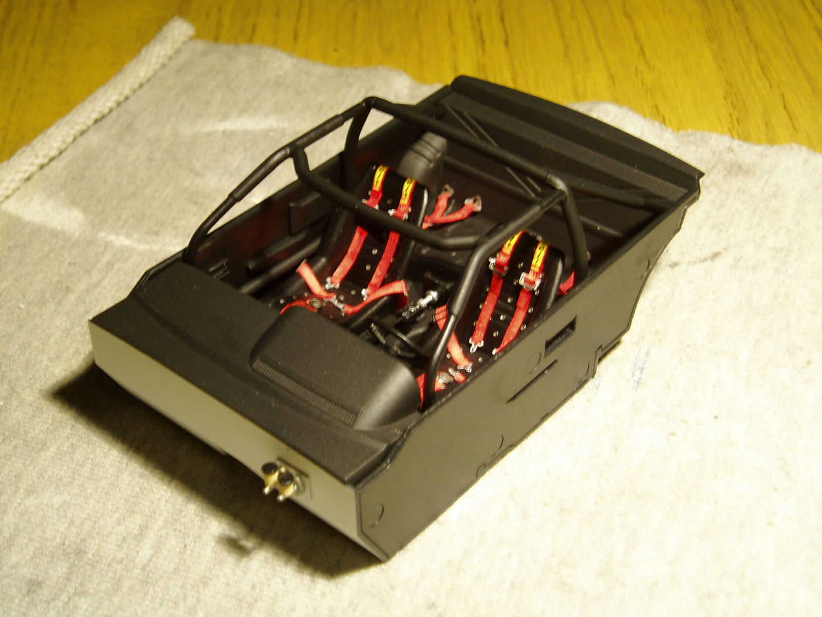 estuve trabajando con el interior agregando las lineas de gasolina y un reposapie para el conductor, lo siguiente fue cerrar la bañera como indica el manual de instrucciones y pegar al chasis