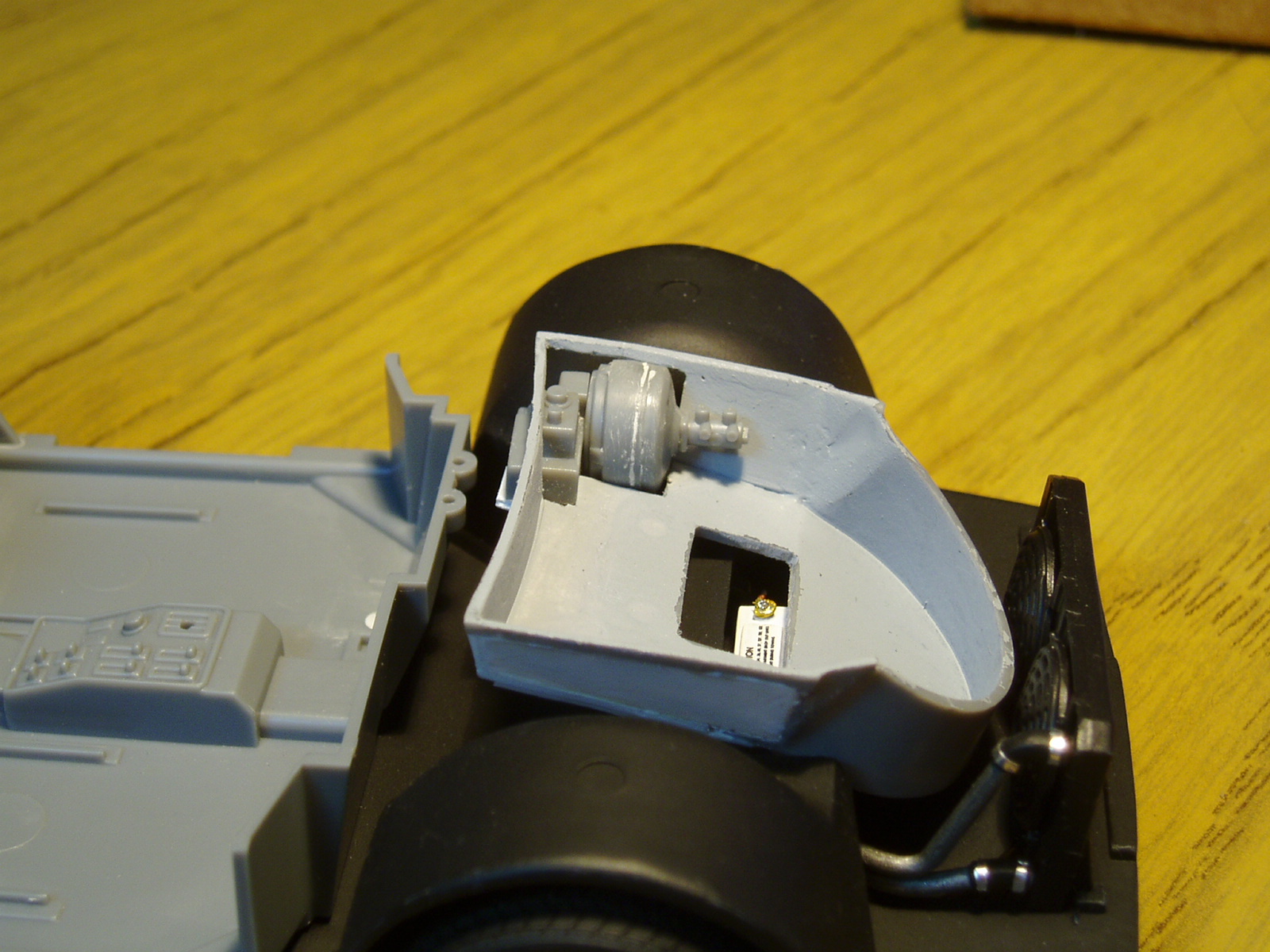 se puede ver parte del habitaculo, el cual hasta ahora solo he recortado piezas y lijado.
