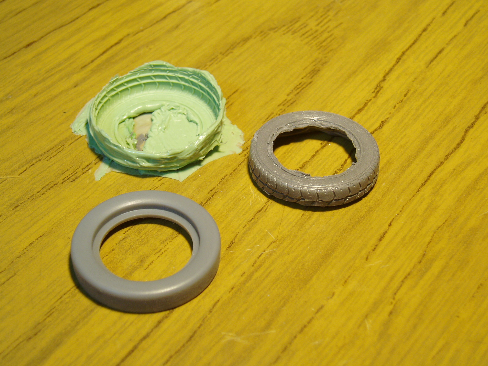 hice un molde de silicona y con pegamento epoxi copie una rueda del Mazda RX-7 cuyo diametro es 1,5 mm menor