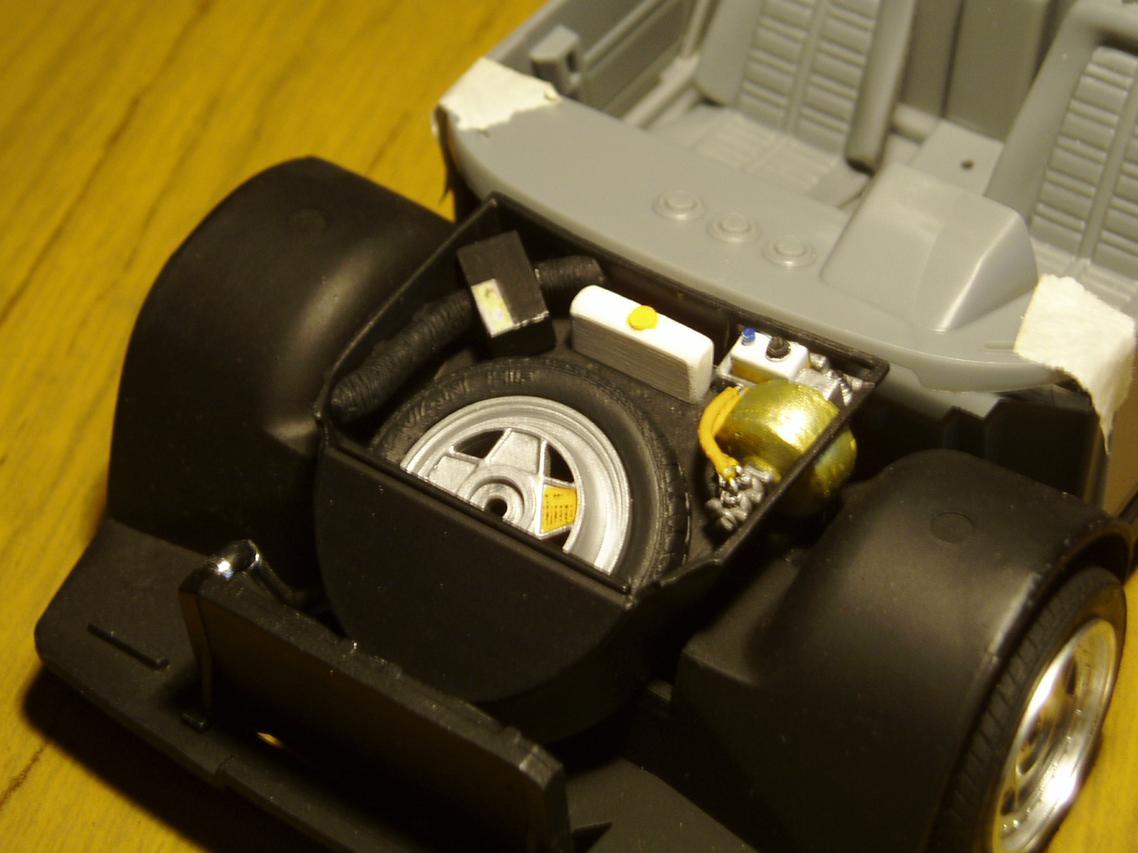 Hola chicos, termine con el maletero, al cual le hice una manguera y una cajita con una calca (ni idea que es); la calca segun pude ver es acerca de la pintura (dice Glasurit)