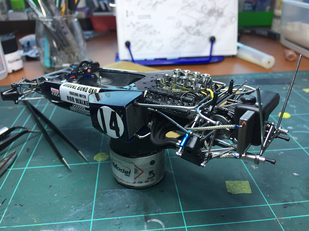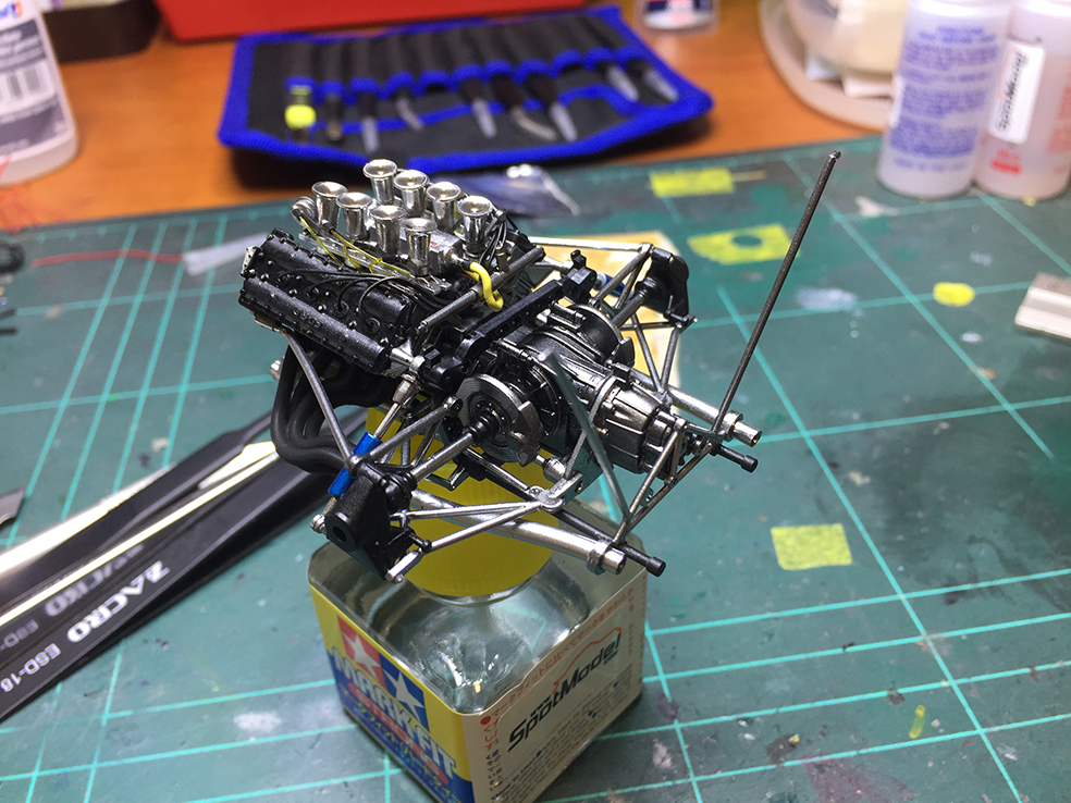 A parte de los cables y los arneses poco detalle más le añadí. Realmente es un kit muy completo y detallado por si sólo (de hecho estos coches de los 70 y 80 ya son agradecidos por si mismos debido a que al llevar el motor visto ya obliga a los fabricantes a detallarlo mínimamente.