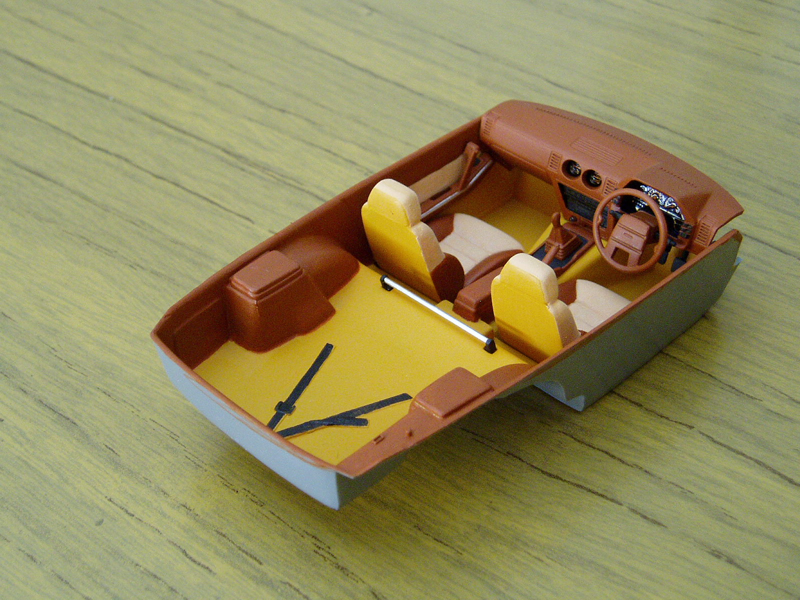 interior hecho, falta pintar la parte externa de color negro para que se vea asi desde abajo pegado al chasis Ahora toca carroceria.