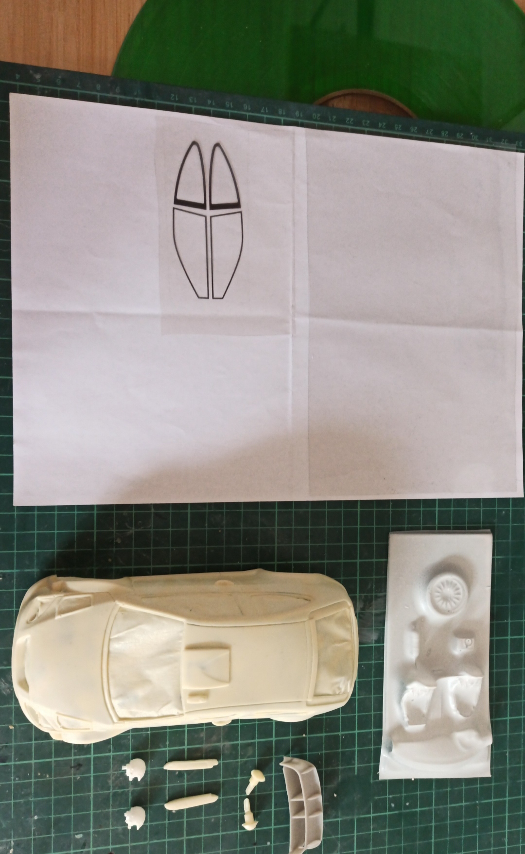 Se compone de carrocería, alerón en 3d , piezas en resina y cristales lexan