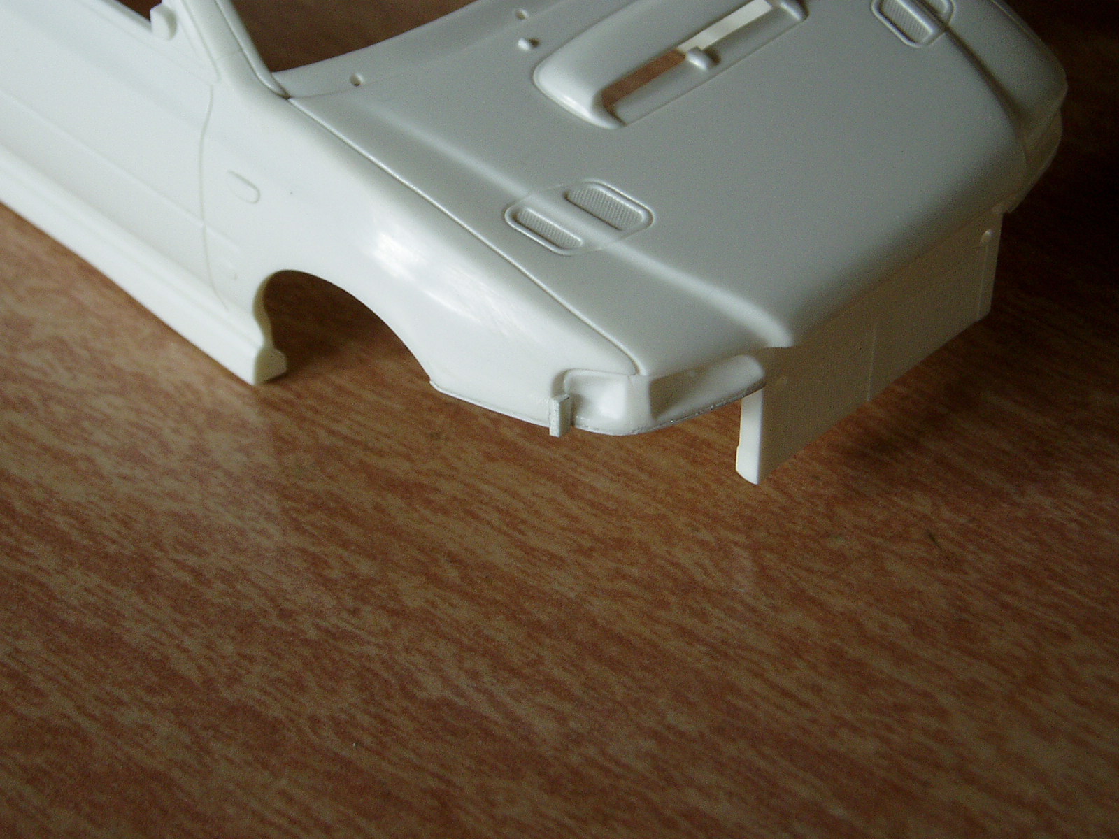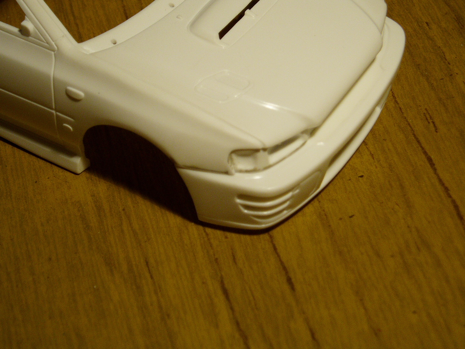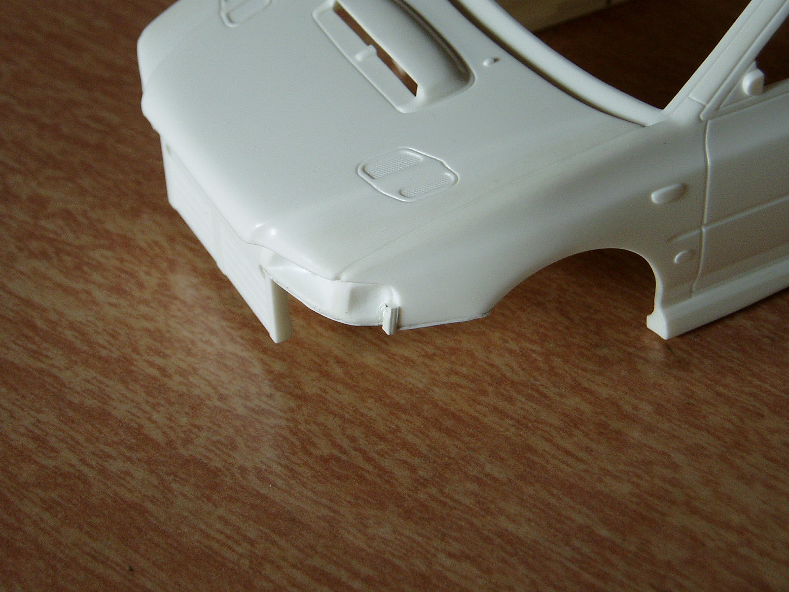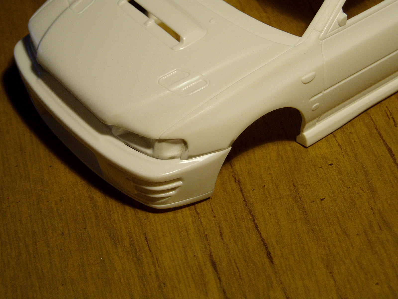 voy encarando distintos aspectos del modelo, el frente donde va la calandra tiene que ser plano y en este caso Fujimi lo hizo curvo, las luces de giro frontales laterales deberian terminar en punta y no rectas (otro detalle), el spoiler delantero no tiene la forma correcta ya que es curvado y no recto, las taloneras traseras estan sobredimensionadas, espero parar ahi.