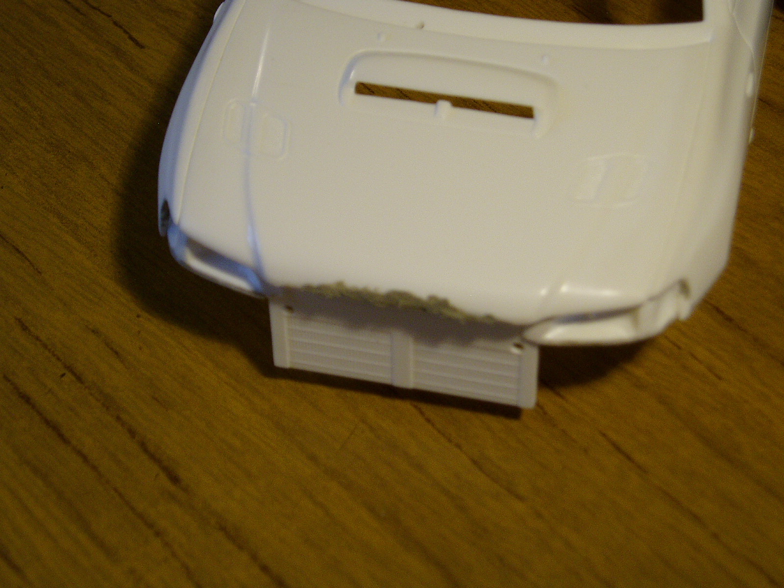 seguimos de a poco con el Impreza; empezamos a coregir algunos detalles, como son los giros delanteros que vienen rectos y deben ser angulados luego de cortar y lijar Seguimos con el frente, pensaba que tenia que debastar y no al contrario, rellenar, asi que masilla putty luego de seca la masilla quedo asi Por otra parte, revise las piezas de la version VI y no van, muy falta de detalle y sin las formas adecuadas, asi que sera version IV que se asemeja un poco mas.