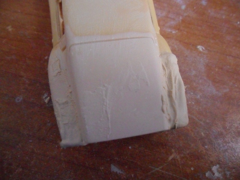 Empezamos los trabajos ponendo muuuuuucha masilla en la cola...