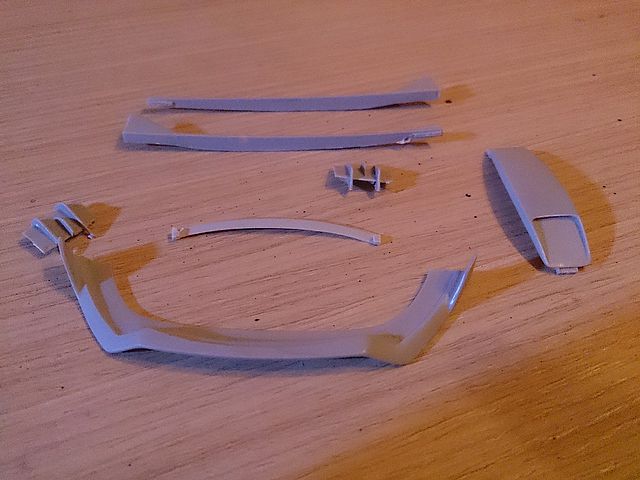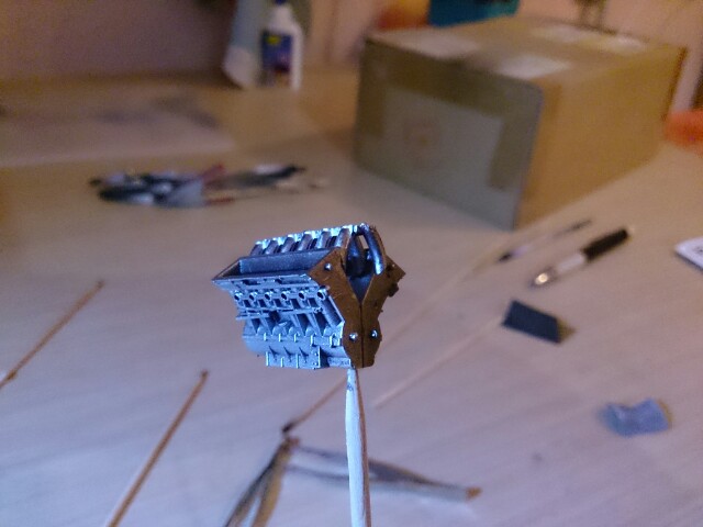 Buenas compañeros.. Despues de unas fiestas me he puesto a darle al ferrari.. He encontrado un pequeño aleron, faltaria subirlo un poco porque queda muy bajo y casi toca la carroceria.. Subo unas fotos de los dos alerones y de las piezas del motor que llevo hechas..