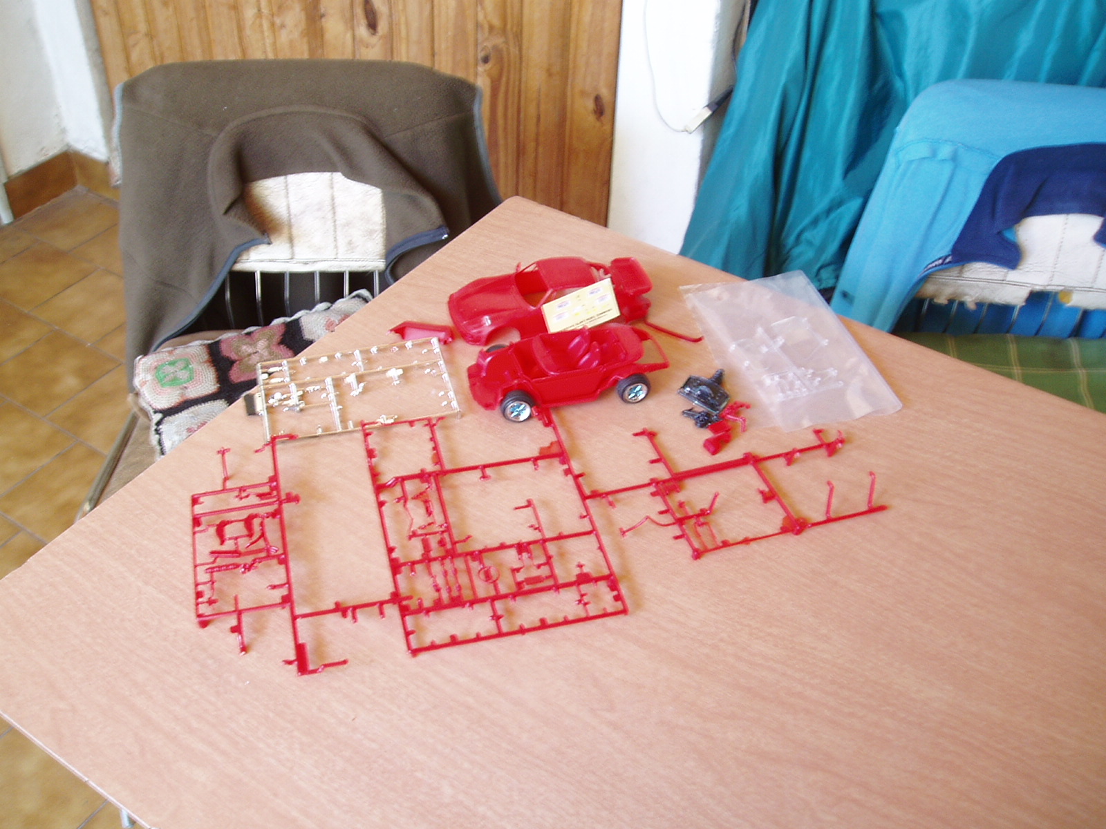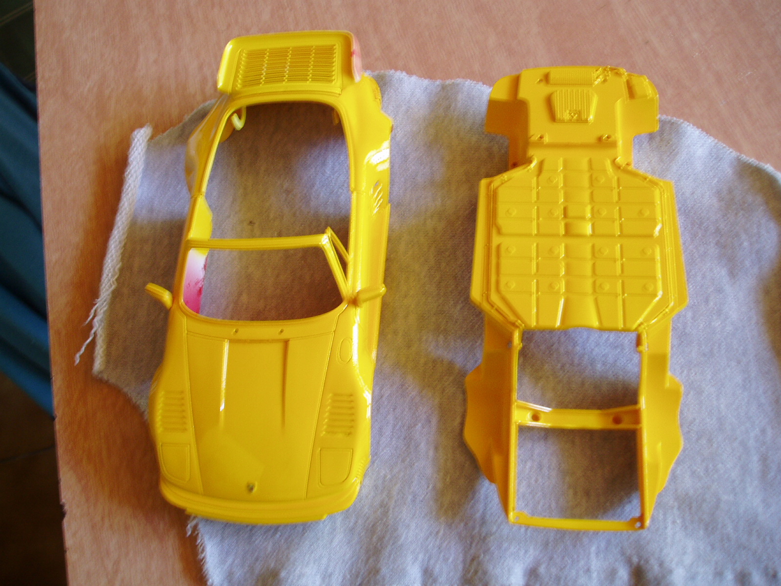Debido a que el kit es en plastico rojo he tenido que imprimar en blanco (Fondo blanco para maderas) dandole dos manos bien finitas