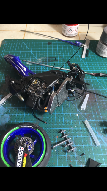 A partir del kit tamiya m1 Yamaha 2009 y la figura tamiya de Valentino rossi quiero crear la Yamaha de 2015 con un kit ks workshop y muchas cosas artesanales os dejo mis primeros avances haber que opináis de esta locura