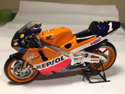 Buenas tardes, os presento mi Honda NSR500 Repsol con la que gano Criville el mundial de 500, espero que os guste, se admiten sugerencias para la próxima.