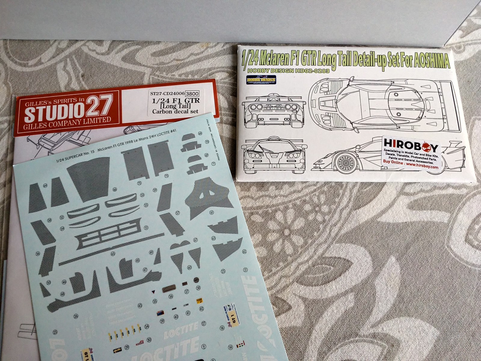 hola vendo aoshima mc laren f1 gtr long tail con detail set de hobby design.La maqueta esta nueva con todo en blister cerrados ,solo he abierto el de la carroceria y pegado una piececilla.Regalo set de calcas de carbono de studio 27 casi intacto y otra caja entera sin calcas ni carroceria .Vendo por 45 euros mas envio una ganga!!Gracias.